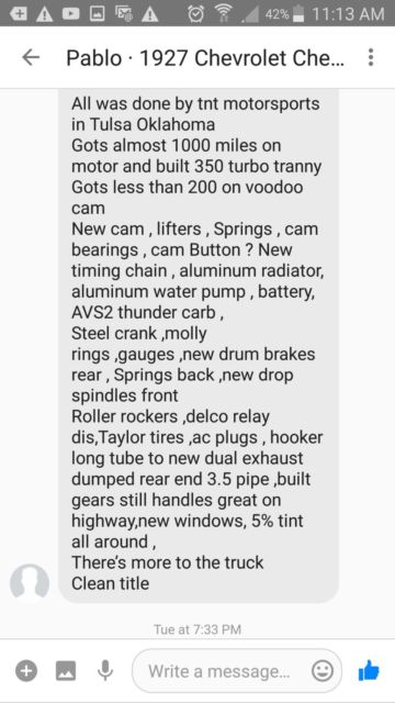 | 400 small block rebuil, 350 transmission, b&m shift posi track rear end . Didn't come out with a/c only came out with heater . Upgraded lights has some normal rust as I can see by the driver door . I've only had this for 3 weeks only selling because of other projects to finish other wise I'd keep it. 89000 original mile showing on dash as you can see motor was upgraded has 1000 mile on build. Peep mirrors on order I will put on the truck. |