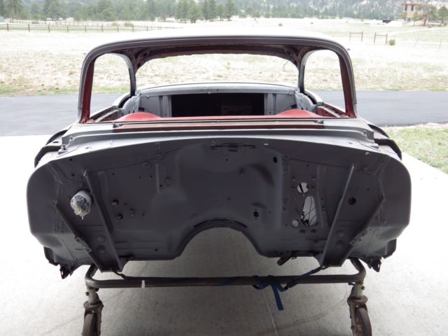Great Project to complete. 1955 2dr HT BelAir. Original Gray and Coral Color. Complete with 265 V8 and Powerglide. All body work complete and initial primer coat applied. All panel work, sanding and primer completed by professional body shop. Sandblasted frame with two coats of primer and two coats of Eastwood Chassis Black . Includes new A-Arms, Shocks (front and rear), disc brake conversion and dual power master cylinder. Many new parts in original boxes including weather stripping, chrome tail lights and door handles