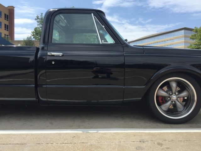 Engine : Chevrolet 5.3L Vortec (LS design) -BBK 85mm Power Plus Throttle Body -MSD Plug Wires -Painless Reflashed ECU -Painless LS engine series Wiring Harness -Custom Fabricated Cold Air intake System (This utilized the cold air from the Cowl Hood) -CPP LS engine Tubular Motor MountsTransmission : Chevrolet 4L60e Custom 1 piece Driveshaft Rear Axle: Chevrolet 12 bolt - Moser Street/Strip Forged Axles - Moser Aluminum Differential Cover with Main Cap Supports - Richmond 4.10 Rear End Gears - Detroit Tru Track Gear Driven Positrac - All new Bearings and Seals Exhaust : -Doug Thorley Tri-Y Long Tube Headers -Custom 2.5" Dual Exhaust System with H-pipe -Flowmaster 40 series Mufflers -System Wrapped in DEI Titanium Exhaust Wrap (Except Mufflers and Tail Pipes) Cooling System : -Griffen LS Style Radiator -Derale Dual Electric Cooling Fans -Derale High Amp Adjustable Dual Electric Fan Controller -Polished Over Flow Tank Brakes : - CPP Hydraboost Brake Booster - CPP MCPV-1 Master Cylinder - CPP Big Brake Kit (Disc Brakes) *13" Front Rotors with dual piston calipers * 12" Rear Rotors with single piston calipers - Braided Steel Front Brake Hoses - All new brake lines and hoses - Custom Hydraboost lines that run hidden inside the frame. Suspension: - Polyurethane Bushings - KYB Shocks - C-Notched Frame - 2.5" Drop Spindles - Lowering Springs - Front and Rear Shock Relocaters (For improved upper Shock Geometry since the truck has been lowered as much as it has.) - CPP Panard Bar for Large Differential Covers - CPP Lowered Center Crossmember - New Ball Joints - New Tie Rods - New Power Steering Box - New Idler arm - New Pitman arm
