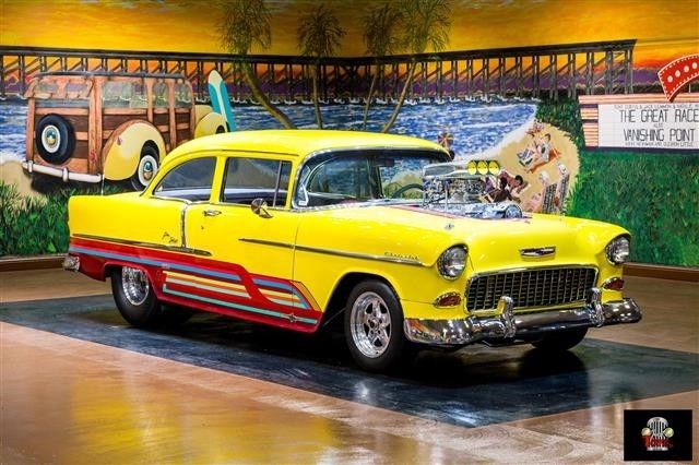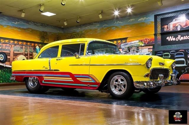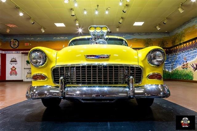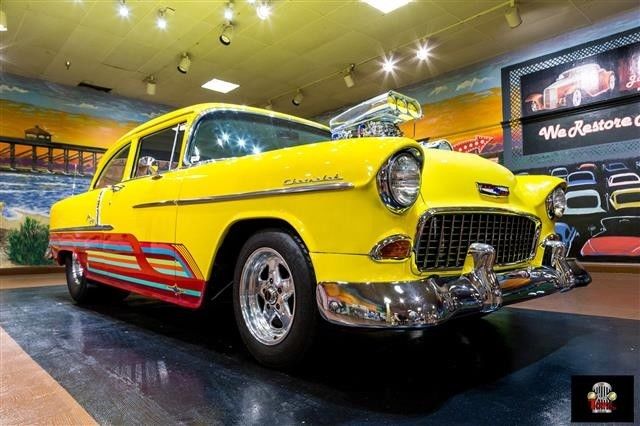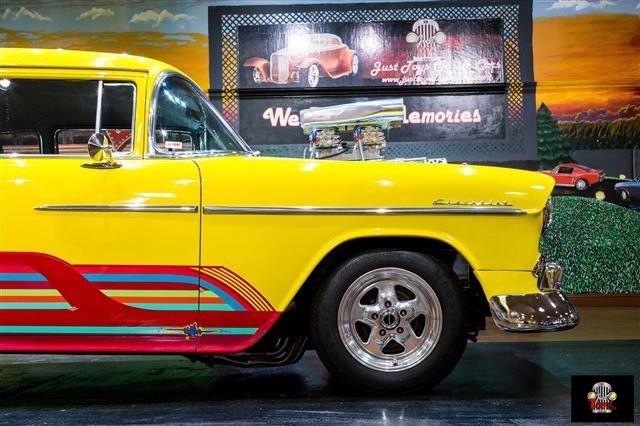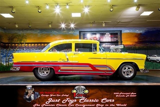 Bad Ass Pro Street Just Toys Classic Cars is proud to present one bad ass Pro Street 1955 Chevy. As we all know the Tri Chevy's are one of Americas most iconic years of cars and this one just screams AWESOME! This car is very streetable and can be driven anywhere. The chrome yellow paint just gleams and no those are not stickers around the bottom of the car. That is custom painted and looks awesome. You should already be... reaching out to us and see if this one can be yours today. As you open up the door you are going to see a custom tweed and vinyl interior that just looks awesome. Unlike some Pro Street cars that you see that have basically race seats and not much else this car has a full interior minus the back seat and everything is done very well. This is a very comfortable car to drive. Obviously the thing sticking through the hood is what everyone wants to talk about. Between the frame rails sits a 454 V8 with a 6-71 blower and a 4 inch space and dual 600 cfm carbs on top of it. Wow that is a mouthful but it is a ton of fun under your right foot. It has a crane cam and Mallory ignition. All this power is mated to a Turbo 400 transmission with a 3500 stall converter and 4.11 rear gears. Yes this baby will haul the mail. Is it in your garage yet? It needs to be. This all steel car with disc brakes and tons of eyeball needs to be in your garage today. We offer classic car financing for those that would like to take advantage of the option. They offer great rates and terms with as little as 10% down. This way you can get the car of your dreams and you don't have to take all of your cash out of the bank at once. You can start that dream today by going to financing and follow the easy step by step instructions. We look forward to speaking with you soon and we look forward to making you the newest member of the Just Toys Classic Cars family. 1955 Chevy Pro Street 454 V8 6-71 Blower W/ 4' Spacer Turbo 400 Tranny W/ 3500 Stall Crane Cam Mallory Ignition Dual 600 CFM Carbs 59 Olds Rear End 4.11 Gears All Steel Engine Engine Type Gasoline Engine Size 454 V8 Fuel Specification â€" Body Body Color Yellow Body Style Hardtop Doors 2 Paint Type â€" Basic Year 1955 Make Chevrolet Model Bel Air Miles 1510 Interior Interior Color Red/Gray Secondary Interior Color â€" Seating Type Bucket Seat Material Tweed & Vinyl Shifter Type Floor Center Console Yes Visit Just Toys Classic Cars online at to see more pictures of this vehicle or call us at 407-598-0504 today to schedule your test drive.