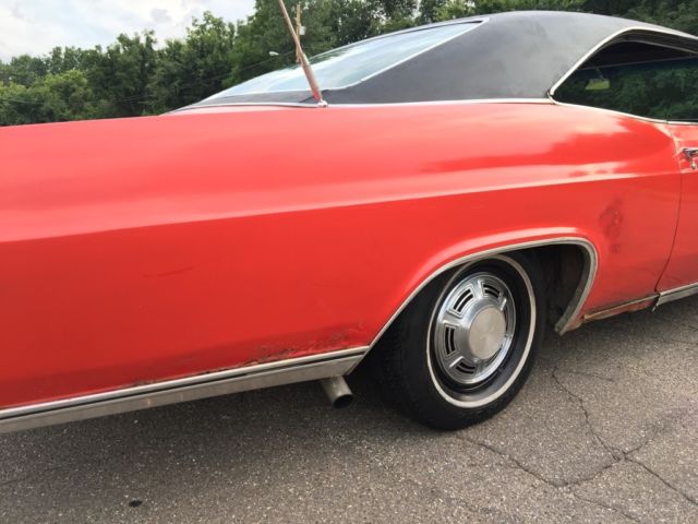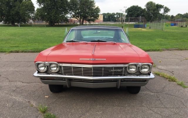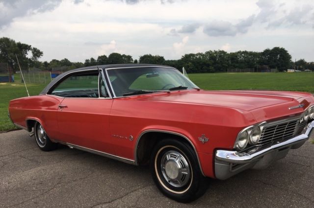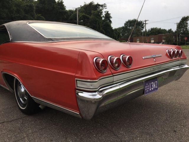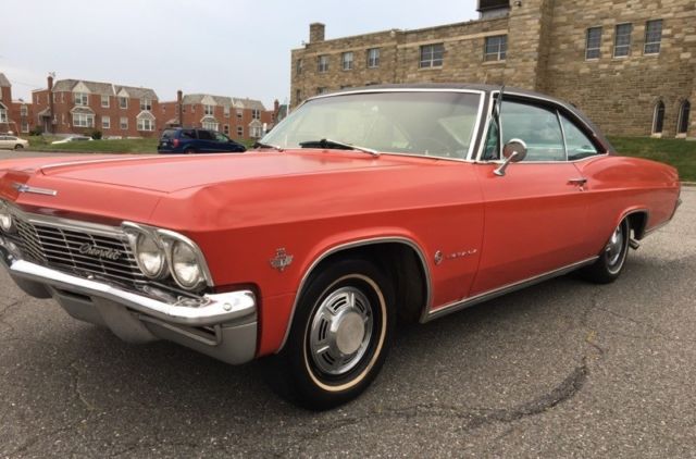 1965 Impala with a rebuilt 327 and powerglide transmission. The engine fires right up, runs excellent, and sounds incredible. It was acid dipped and professionally rebuilt to OEM specs by a shop owner in Pottstown, PA. He stated that the 327 was from a 1969 Impala convertible, but the block casting number shows as a 1968. The original powerglide transmission and drive shaft were also professionally rebuilt at the same time and all three have under 2000 miles on them although the trans has developed a leak in the pan area. Accessories include a rebuilt 4 barrel Holley carb, aluminum Edelbrock intake, newer Accel HEI ignition coil, steel radiator, water pump, fuel pump, power steering pump, starter, alternator and battery as well as dual Flowmaster/exhaust system. A new dual master cylinder and new brake lines were added to replace the single resevoir cylinder. The vehicle has been garage kept for at least 15 years, some signs of previous weathering are evident around the rear wheel wells, trunk and space beneath the vinyl at the rear window frame. Otherwise the body is in good shape as are the floor pans, chrome pieces, vinyl top and frame. The interior has all of the original material. The seats are in need of reupholstering, but headliner and door panels are solid. Lights, wipers, and blinkers all work. No climate control, cigarette lighter or radio functions. The original 283 is available as well but not included. |