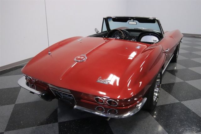 This 1967 Chevrolet Corvette convertible is a true American icon. So as you grab the four-speed, let the wind whip through your hair, and hear the V8 sing through the dual exhaust, you'll know exactly why no one can resist an open-top Sting Ray. Marlboro Maroon is this car's original color, and so it's great to have a true red Corvette. As you look over the body, you can see that all the intricate trim is quite complete and has a look of originality. And that's a good thing, because these cars really optimize '60s style with plenty of brightwork on everything from the bright taillight bezels to the chrome bumpers that artfully dip in the center. And while we know you'll love the wind-in-your-hair experience, this also has a smart-looking white hardtop for added distinction when you want to be weather-tight. Inside, the factory-correct black looks great against the deep exterior maroon. The C2 interior is always a favorite in classic car circles. The now-iconic dual cowl design is as much a part of the motoring experience as the purr of the engine or rumble of the exhaust. A woodgrained steering wheel feels great, transmitting the front tires' activities directly to your fingertips. Plus, all the gauges show crisp markings that let you keep an eye on the engine's status. You have some nice features like power windows and the cool vertical-style AM/FM tuner. But really, your favorite feature will be the polished stick-shift, because it's like a shiny beacon calling out for your right hand. Under the hood is a mid-1960s 327 small block V8. This era-correct motor also keeps its appearance correct with the shining air topper, matching distributor shield, and cursive Corvette script valve covers. It even inhales through a correct-style Holley four-barrel carburetor and exhales through the classic ram's horn exhaust manifold. The V8 gives nice growl out of the dual exhaust, and you are the conductor of this symphony because of how the four-speed manual gives you complete control over the powerband. The Corvette remains one of the best experiences on the road, and that's thanks in no small part to the fully independent suspension and four-wheel disc brakes. This is a legendary Corvette set up just the way you want it. So don't let this icon slip away. Call today!!!