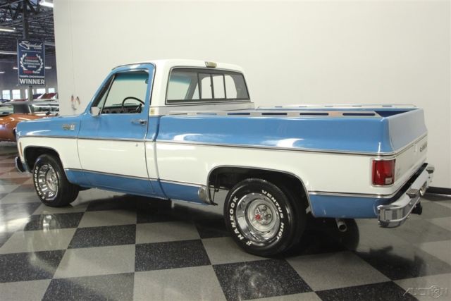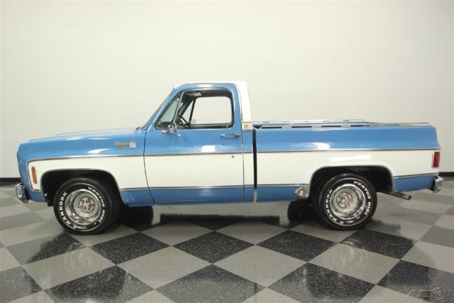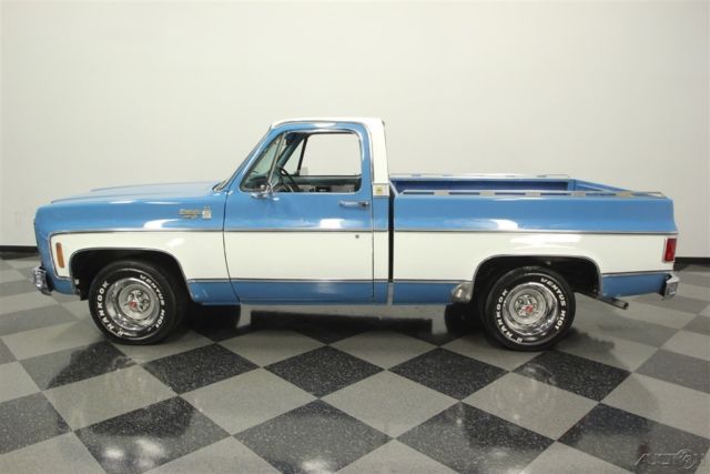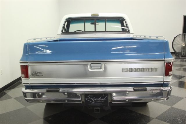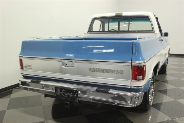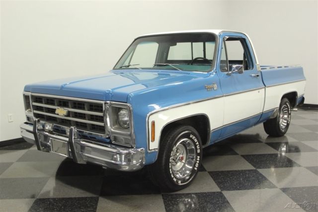 It's time to get a vintage truck that knows how to work and play just as hard as you do. This 1979 Chevrolet Silverado has a cool two-tone appearance, nice investments, it's original factory engine, and an A/C interior â€" all for an irresistible price. Two-tone and plenty of chrome trim perfectly represents this top-of-the-line Silverado model. And the premium appearance is capped off by the Rally wheels â€" the feature you look for on the classic Chevy muscle cars was also a factory option for premium pickups! This truck is nothing but straight crease lines and horizontal brightwork, so it's great to see this workhorse has been respected all its life. It was even treated to a modern clearcoat respray once in its lifetime. And while this classic knows how to look nice, it's also still a useful truck. That's why you have extra driving lights, tie-down rails on the side of the bed, and a proper trailer hitch in the rear. Inside is more of the loaded Silverado attitude. This truck came with all the best features like power windows, power locks, and an AM/FM/cassette stereo â€" all still working correctly today. Plus, the upgrades are subtle. For example, the bench seat is believed to be newer, but it's finished in the classic button-top presentation to keep looking correct. And the factory air conditioning has been converted to R134a for easy serving for years to come. As you slip behind the factory steering wheel, slide open the rear window, and head on down the road, this one gives you all the best old-school truck feelings. Under the hood is Chevy's trusty and powerful 350 cubic-inch V8. This is the original engine. It inhales deeply with a four-barrel carburetor and Edelbrock intake. And it exhales nicely with the dual exhaust. There's even an aluminum radiator to keep this pickup running cool. Plus, the three-speed automatic transmission, power steering, and front disc brakes combine to make for a terrific total cruising package. This sale comes with a ton of paperwork, including the original order form, dealer invoice, canceled checks, and title docs. So this the classic pickup that gives you all the right features to enjoy, and exceptionally affordable price is just the bonus. Don't miss this deal, call today!