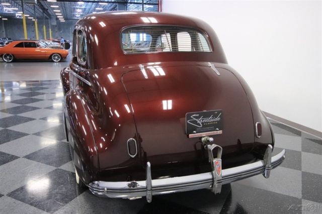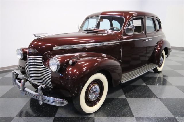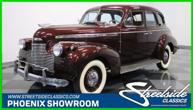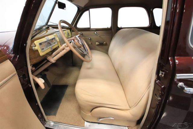 You stopped on this 1940 Chevrolet Special Deluxe sedan for the exact same reason why we fell in love with it, too. There was a lot invested to give it a terrific shine of nostalgia and an overall time capsule presentation. And this is an actual miles car â€" so yes it's averaged less than 780 miles annually! This pre-war Chevy makes a great first impression, and that all starts with the paint. The Ruby Maroon Metallic strikes that perfect balance of providing a bold hue with a deep enough tone to showcase its sophistication. All of this is particularly true because there has been a lot invested in this paint. We have receipts from 2007 documenting a professional prep job before 12 coats of color and 5 coats of clearcoat were applied. And when you pay for quality, it lasts. That's why the shine does a fantastic job of highlighting this Chevy's rounded fenders and unique body curves. And while this car has a better luster than what Chevy could provide in '40, this is the kind of bright presentation these classics have always had when you pictured them in your mind. Rivaling the paint for shine is the brightwork. It surrounds every piece of glass, runs the full length of the car, and showcases the artful grille design. In fact, this one looks terrific, right down to the color-matched wheels with pinstriping, factory wheel covers, and iconic whitewalls. Plus, the hood ornament was left in a more original condition to remind you the work this classic really has been given. Inside it's been restored to look like a time capsule. The option lists were a lot shorter in 1940, which gives this car an uncluttered appearance of a simpler time. The steering column is uncomplicated with a big wheel to help make turning a breeze. Behind it is just one stalk used to shift the manual transmission. Despite this sedan's simplicity, the gauge cluster is quite informative. It has info for the fuel, water temperature, oil pressure, and voltage that are all surrounding the Art Deco speedometer. Because this is a true 1940s car, there are the traditional chrome accents on places like the doors, wheel, and the dashboard. Plus, the two rows of benches feel like cushy couches, and the mohair-like cloth seating is truly an artistic touch. It feels so fresh, yet period-correct, that you know there were all the right investments here. Chevy's bulletproof 216 cubic inch inline-six was the backbone of the company for decades, so it's a welcomed sight under the hood. Famous for its durability and smoothness, you'll find that this is an easy car to love. The engine bay is nicely detailed with the painted head cover and tall oil bath air cleaner with correct AC decal. The motor starts easily with a great six-cylinder grumble from the single tailpipe, and you'll love the control that the three-speed manual transmission gives you over this classic powerplant. Complete with owner's manual, service manual, and build receipts, this is an attention-grabbing cool cruiser. So when a restored pre-war classic with low actual miles is up for grabs, you know you need to act quickly to get it home. Call today!!!