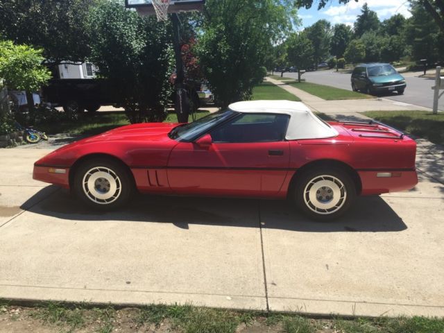 Description of 1987 Chevrolet Corvette Red w White Convertible Top |
