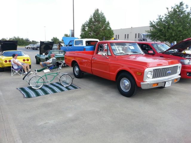 Clean title. C10 in ebay listing because C20 not a choice on ebay. 1971 C20, 3/4 ton, eight-lug, long bed, fleet side Chevrolet Truck for sale. Great shape, recent rebuild, nice interior, nice exterior, drive train, great driving/sounding truck. Straight, good body. Factory 3/4 stance with steelies and hubcaps. Crate V8 350-same type as original, headers, dual kick-out exhaust. Edlebrock 4 barrel, Edlebrock intake, MSD electronic ignition. R12 factory A/C with rebuilt A6-type compressor. Factory front disc power brakes p, power steering ps. Rebuilt Muncie sm465 with granny gear and Dana rearend-same type as original = great truck for hauling. Passed classic inspection. I drive this truck to work on good weather days. AMGMC radio (not working- I didn't try to troubleshoot) ****************NO LEAKS!******************* I need to sell due to unexpected medical bills. Asking $12,000 - or reasonable offer. Truck is not perfect and has some small issues. However, this is a good deal-I take it camping/fishing/move welding tanks on long distance trips with no worries. Buyer pays for shipping or I will deliver for free within 150 miles of Dallas Texas. Call, text, or contact me through ebay for details. (404)-903-0564 |