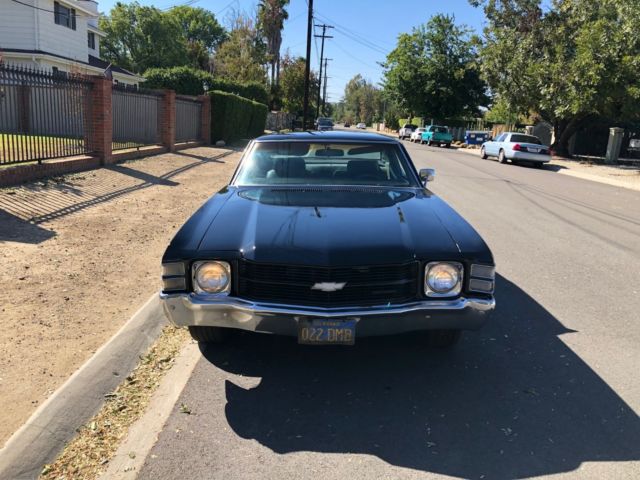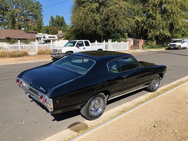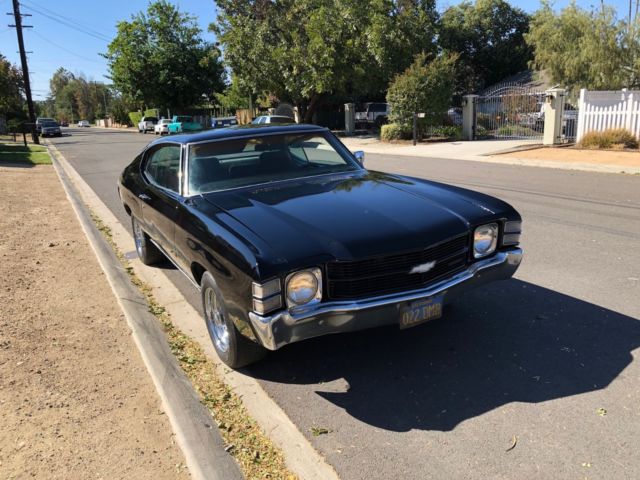 Thinning out some cars from my stable, selling my black 1971 Chevelle Coupe, this is a very nice driver quality chevelle. This chevelle has a 12 bolt rear end, front end disc brakes, and is a factory bucket seat floor shifter car. Ca car since day one, still has its original blue california license plates. Body wise the car is extremely solid, no rust or patches anywhere on floors or trunk. Clean title. 350 engine that runs really well and sounds healthy, 350 auto transmission. Rally wheels. Vehicle is sold as-is without any warranty as this is an old vehicle, buyers are responsible to inspect vehicle prior to bidding. I reserve the right to end listing early as the vehicle is also listed for sale locally. Any questions you can call 714 401 3854