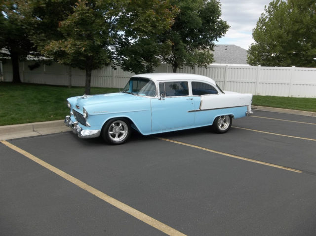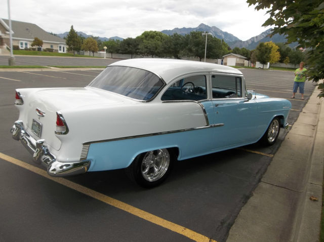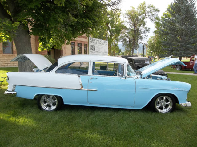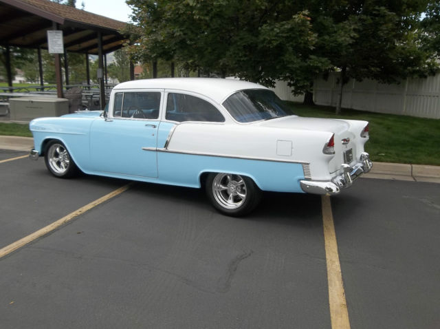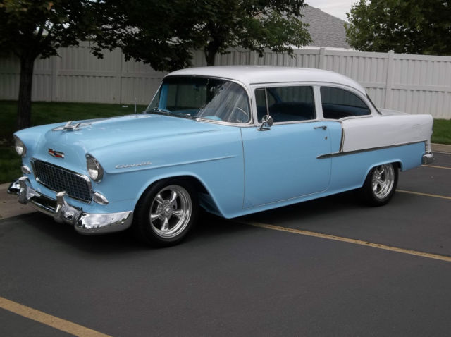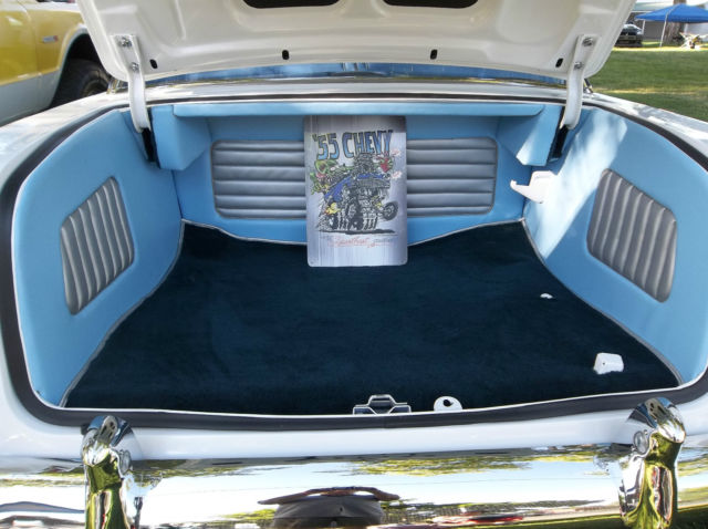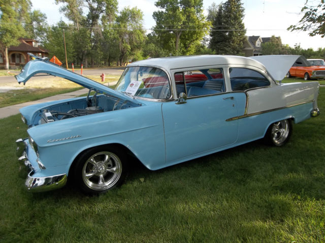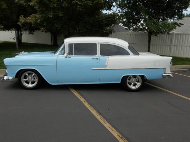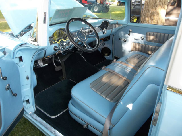 | 1955 Chevrolet 210 / 2 Door Post Frame Off Restoration PPG Paint / Baby Blue and White Every Part On Car Replaced Or Restored Tilt Steering Column 355 Cubic Inch V8 Engine w/ Approx. 400 HP Edelbrock Carburetor 600 CFM Vintage Air w/ Polished Compressor and Dryer Endless Chrome 700R Transmission with 2000 Stall converter – with Overdrive Front Disc Brakes w/ Chrome Booster and Master Cylinder Aluminum Radiator. Electric Fan Front Sway Bar Full custom interior Dakota Digital VHX Series Instrument Gages 16” Torque Thrust II Wheels w/ Polished Aluminum Spinners For Sale – 1955 Chevrolet 210 / 2 – Door Post Body – The body of the 1955 Chevrolet 210 was a frame off restore. Body was completely stripped and painted with PPG paint. Results are a stunning Baby Blue and White paint job. Chassis – The suspension of the 1955 Chevrolet 210 has been completely redone and upgraded throughout the car. The front has 2 inch drop spindles and the rear is a 2 inch drop block with adjustable shocks. Vehicle has 4 wheel disc brakes with stainless steel brakes lines and a 9 inch power booster. The rear end has 3. 55 gears / 16 inch Torque Thrust Wheels (16x7) front wheels. (16 x 8) wheels in the rear. Also has a front sway bar. This is one amazing Chev!!!!! It is a complete frame off restoration/modification that took 2 years to complete. It only has 35 miles and runs and drives flawlessly. The car took Best Of Show at two car shows I attended last year and it gets massive attention!!! Every inch of this car has been gone through with great care. Every nut and bolt replaced. No corners were cut in this restoration. It is absolutely. hands down one of the finest restoration jobs you will ever see!!!!! Please note: This vehicle is for sale locally. the owner reserves the right to cancel this acution at any time. This vehicle is being sold “as is” with NO warranties. A deposit of 2. 00. 00 dollars. through Pay – Pal will be required within 48 hours after the end of the auction. Full payment required within 7 days after the end of the auction. Good luck to all bidders. DON’T LET THIS ONE GET AWAY!!!!!! |