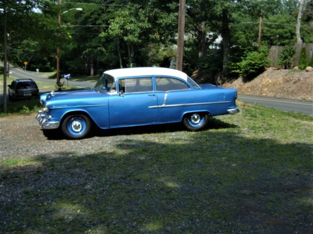 | 1955 Chevy 210 2 door post originally from Mexico where it lived all it's life until I bought it 5 years ago. It has a low mileage 283 from a 63 Chevy impala ss for a engine. I just put all new brakes last week on it and two front shocks. It has 4 new tires. It has the original 3 speed transmission converted to the floor. The floors have been patched. The Chevy runs well but sometimes it needs a little quick start spray down the carburetor to get it running for the day. The drivers door doesn't open from the outside so I leave the window down in the garage and open it from the inside. The Chevy needs to be taken to the next level like maybe a muncie 4 speed and new paint. So it's a cool 55 Chevy rat rod that runs strong and stop well. |