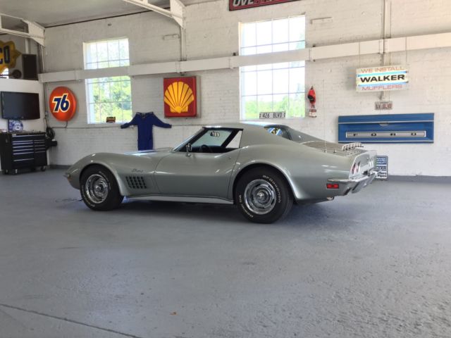 Up for auction is a super nice 1972 Corvette with 44,000 original miles. Originally a southern car, it has always been garage kept and never driven in the winter. It is manual 4 speed transmission with air conditioning. This is a pretty rare combination. It is a great driver and everything works perfectly. Tires are new. Undercarriage is perfect. The paint is flawless. It is pewter in color. Black interior is nearly perfect. We have the original steering wheel. If the pictures don't answer all your questions, please e-mail or call 517 748-3067. If you include a phone number in the e-mail, I will call you. This vehicle is being sold in "as is" condition with no warranty implied or otherwise. The description is to the best of our ability but is for information only and does not constitute any type of warranty. You are encouraged and welcome to inspect the car or arrange for an on-site third party inspection before you bid. Bidders with zero or negative feedback should contact us before bidding. Buyer is responsible for vehicle pickup and/or shipping and any costs involved. Michigan sales tax or reciprocal state due as necessary. Seller is not responsible for any damage incurred during vehicle transportation. A deposit of 10% is due 2 days of the auction's end. Cash or certified check is ok. This deposit does not provide you with a chance to inspect to decide if you want to buy the vehicle. You already have bought it! Balance is due within 7 days of auction close. For the balance due, we will only accept cash ON DELIVERY (in person) or a certified check. Vehicle and title will not be released until funds clear. We reserve the right to end the auction early. Thanks for looking