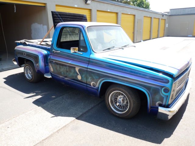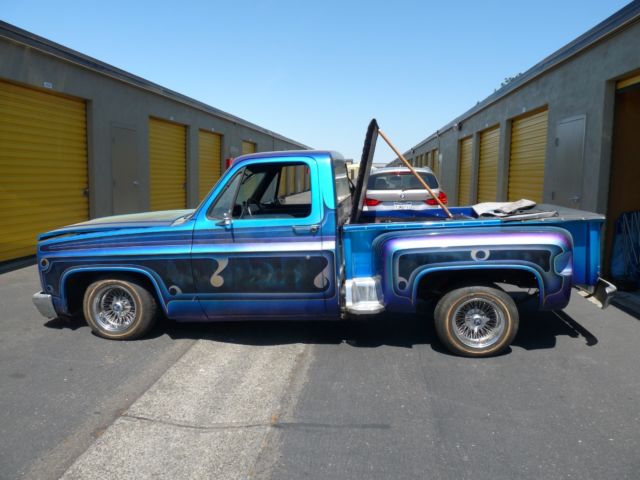 | 1985 Chevrolet Lowrider stepside pickup 24v hydraulics, 2 pumps. Trick paint! This truck has sat in a garage for quite awhile, but was started regularly! Not titled in the California system in over 15 years, so title is clear! I bought it from the original owner, but I just don't have time to mess with it! Lowrider Magazine award winner! |