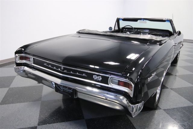 A 1966 Chevrolet Chevelle convertible in a fantastic triple black is already an attractive idea. But dig deeper to see all the best upgrades â€" including the performance big block power, overdrive transmission, and an A/C interior â€" and soon you realize just how irresistible this deal really is. This car is quite striking from its first impression in the way it mixes speed with sophistication. The '66 cars blend artful touches (like the subtle Coke-bottle curves) with subtle aggression (like the intimidating overhang on the hood.) And this one really does it right. The black has that instant look of quality that comes from a large recent investment. Before they even laid down the color, they made sure it had a good canvas with straight sheetmetal and good gaps all around. It has an aggressive look that earns its SS upgrade, including the blacked-out grille, faux hood vents, ribbed lower rocker panels, and all the correct badging â€" right down to the Super Sport scripts on the rear fender. And for added aggression and shine, there are the large 17-inch American Racing Torq Thrust wheels. Beneath the crisp black roof is a nice black interior. So with the exterior, roof, and interior all deep and dark, this one completes the upgrade to the ultra-desirable triple-black! The seats are crisp, and the sea of darkness is tastefully broken up by the insignia trim. Plus, there's more great shiny trim everywhere from the long horizontal speedometer to the classic Chevelle steering wheel. And while this one has a fantastic vintage appearance â€" right down to the AM radio that's still on display â€" there are some subtle but handy upgrades. The Equus tach is cleanly mounted under the dash, and the modern R134a air conditioning means you can cruise with the top down long into the summer season. Under the hood is a very clean and mean powerhouse. The badging might say 396, but this is actually a larger 454 cubic-inch big block V8. And not only do you get more displacement, but also there are more go-fast goodies, such as Quadrajet four-barrel carburetor, Weiand intake, and Hooker headers. So while all great real-deal SS cars have a thunderous exhaust note, this enlarged and enhanced one gives an even more impressive growl. But what makes a muscle machine like this an all-around great classic are the added driving features. For example, the 700R4 four-speed automatic transmission is stout enough to handle the enhanced V8, and it's also smooth enough for overdrive cruising. And there's even a newer radiator to help keep this running cool even if you're in traffic with the A/C pumping. Add in power steering, front disc brakes, and the grip of modern Kumho tires, and this is the droptop you'll love to drive AND show off. A great presentation, A/C comfort, serious power, and it's all wrapped around a triple-black body. Oh yeah, this is the ultimate muscle machine, and it can all be yours if you act fast enough. Call today!!!