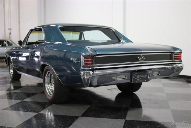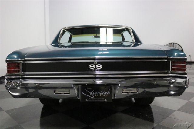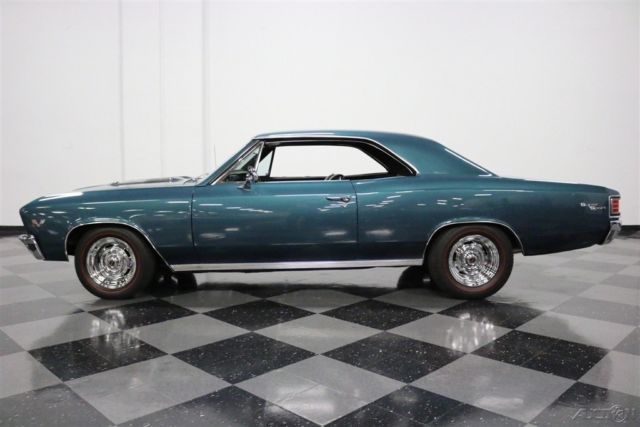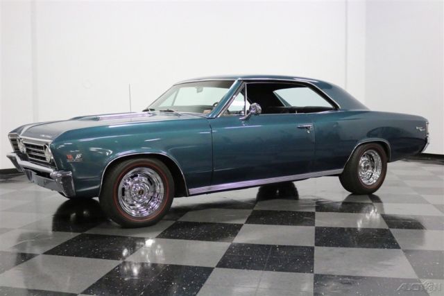 This 1967 Chevrolet Chevelle SS396 is no aftermarket rebadging of a lesser version of the model - it's the real thing and it is awesome. This special edition Chevy wears its original shade on its exterior, harbors period-correct, big block power under its hood and has only logged about a thousand miles since its very extensive rebuild - just enough to get in some thorough road testing and tie up any loose ends. All the hallmarks of a skillful and thorough restoration are on display here. The mountain green paint this classic muscle car wears provides a great look and it's in very nice shape, with an even shade sitting under a strong clearcoat to produce a very impressive shine. This Chevelle left the shop only a few years back, where it benefitted from a frame off restoration. When it came time to put the pieces back together, it was done with a lot of precision and you'll find nice even gaps surrounding the body panels, with doors, hood and deck lid that open and close just as smoothly as when this car was new. There's clear glass on all sides of the cabin, surrounded by fresh-looking rubber seals to keep the elements out. All the exterior chrome fittings are looking sharp, from the broad front grille Chevy added just the year before this '67 came out, and the windshield and rocker panel trim, on back to the Super Sport badging that provided fair warning to its muscle car competition. What appears to be a nearly new interior is just inside the doors in factory configuration. There hasn't been much traffic venturing inside the doors, so the black vinyl surfaces of the front buckets and rear bench seat are still looking their best, showing no creasing or wear marks. The seating is bracketed by door panels in the very same condition. A trio of aftermarket gauges sits just above a great looking center console, joined by a generously proportioned tach just to the left of the speedometer, as the only add-ons inside. The dash area looks very sharp, with its assortment of factory gauges all functional and easily readable, chrome accents that are in top shape, and a straight and supple dash pad sitting on top. Factory in-dash vents are at both sides to bring air-conditioned comfort into the cabin. The trunk area is nice and clean, with a plaid liner on its floor that matches the covering over the spare tire. There's plenty of power under the hood, with a period correct 396 cubic inch V8 sitting at the center of a show-stopper of an engine bay, surrounded by braided hoses in place of their more common rubber counterparts and several other eye-catching chrome components. It's armed with an aluminum intake manifold and a Holley 4-barrel that sits underneath a properly badged chrome air cleaner, as well as a pair of chrome valve covers on its sides. A performance cam has been added to up the big block's output and it also provides a nice, appealing lope - nothing drastic, but just enough to let you know there's a serious engine on board. The 4-speed automatic 700r4 transmission just behind it offers an overdrive gear for engine sparing low RPMs at highway speeds. Power steering makes this upper echelon Chevelle easy to navigate while power front disc brakes offer fade resistant stopping ability as this outstanding Chevy takes to the streets on its 16" chrome Rally wheels wrapped in redline radials. With a meticulous restoration leaving it in outstanding condition both inside and out, this 1967 Chevrolet Chevelle SS396 will impress even the most experienced of car enthusiasts. Call today!