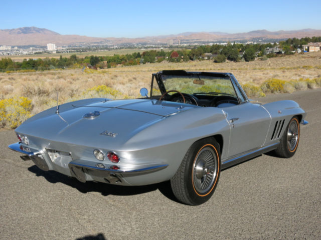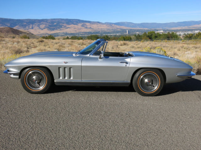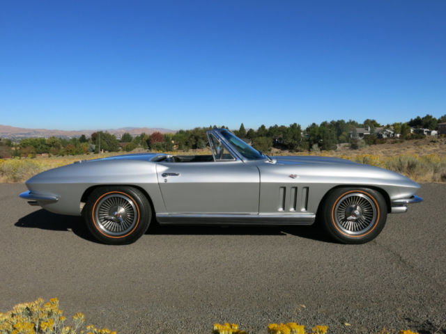 Offered is this very clean west coast 1966 Chevrolet Corvette finished in the original color combination of Pearl Silver over a black standard interior. it's original L75 327 cubic inch V8 producing 300 horse power and 360 lb-ft of torque this Corvette runs excellent. Mated to the 327 is the optional Powerglide automatic transmission that shifts very well. This classic C2 Corvette is an excellent driver in a very attractive color combination. The older repaint still shows very... well. The C2 Corvette's have been highly collectable for many years and have proved to be an excellent investment over time. The aluminum wheels with Coker tires really set this car off. There is something special about driving this Corvette you feel a connection to the car that modern cars do not offer. The C2 Corvette is not just a car but a piece of art. Please feel free to call James Krueger with any questions at 877-893-8496.