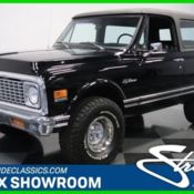 With its triple-black package, V8 power, 4x4 prowess, and full convertible appeal, this 1972 Chevrolet K5 Blazer has been restored to the kind of standard for those who demand their classics have true distinction. Black paint is terrific when it's this glossy, but it takes much more than just an investment in color. It needs great sheetmetal to make the color look like a midnight masterpiece. So you can really tell they made a total investment when restoring this classic Blazer. They took their time with the details, too. The bumpers are new and shine like mirrors; the full-length trim is straight and fresh; and the hardtop has a textured black appearance (almost like a classic muscle car with vinyl top.) And speaking of that fiberglass top, remember this was the era of the fully removable roof to turn this Blazer into a full convertible. The restored black interior completes the ultra-desirable triple-black package. And while we love these on muscle cars, this Blazer reminds us that trucks do it a little differently. After all, you still get the individual comfort of a bucket seat, but it's textured in the classic country pattern that came on the upper trims of the Chevy pickups. In fact, they really paid attention to getting the classic appearance correct â€" right down to the AM radio that's still on display. But more than a great time capsule, this is an excellent cruiser. The center console, new stock steering wheel, and crisp gauges make driving easy. And the ride height of this 4x4 SUV even towers over a lot of new machines to give you a commanding view of the road. Under the hood is Chevy's famous 350 cubic-inch V8. You can tell they took their time with the restoration to even get the engine bay right, and there's a long list of new components. So the bold orange block looks terrific as its radiating from within the darkness. A trusty and tough V8 like this is great in a go-anywhere 4x4. And the way it fires up readily and idles smoothly reflects more of a good investment. Topped with a Quadrajet four-barrel carburetor, it makes plenty of power and the right rumble from the header-fed dual exhaust. The lifted stance, BF Goodrich All-Terrain T/As, and the recently rebuilt two-speed transfer case gives you the confidence to take this one up the trail or out on the dunes. But more than just an off-roader, this one will look good rolling down Main Street. So this is built to be an easy cruiser thanks to a TH350 three-speed automatic transmission, power steering, and front disc brakes. Here's a full-sized, full-convertible 4x4 that was restored to turn heads on the street and trail. That's why we love this Chevy, and it's also why we know it's deal that will be leaving us quickly. Call today!!!
