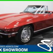 This 1967 Chevrolet Corvette convertible is a true American icon. So as you grab the four-speed, let the wind whip through your hair, and hear the V8 sing through the dual exhaust, you'll know exactly why no one can resist an open-top Sting Ray. Marlboro Maroon is this car's original color, and so it's great to have a true red Corvette. As you look over the body, you can see that all the intricate trim is quite complete and has a look of originality. And that's a good thing, because these cars really optimize '60s style with plenty of brightwork on everything from the bright taillight bezels to the chrome bumpers that artfully dip in the center. And while we know you'll love the wind-in-your-hair experience, this also has a smart-looking white hardtop for added distinction when you want to be weather-tight. Inside, the factory-correct black looks great against the deep exterior maroon. The C2 interior is always a favorite in classic car circles. The now-iconic dual cowl design is as much a part of the motoring experience as the purr of the engine or rumble of the exhaust. A woodgrained steering wheel feels great, transmitting the front tires' activities directly to your fingertips. Plus, all the gauges show crisp markings that let you keep an eye on the engine's status. You have some nice features like power windows and the cool vertical-style AM/FM tuner. But really, your favorite feature will be the polished stick-shift, because it's like a shiny beacon calling out for your right hand. Under the hood is a mid-1960s 327 small block V8. This era-correct motor also keeps its appearance correct with the shining air topper, matching distributor shield, and cursive Corvette script valve covers. It even inhales through a correct-style Holley four-barrel carburetor and exhales through the classic ram's horn exhaust manifold. The V8 gives nice growl out of the dual exhaust, and you are the conductor of this symphony because of how the four-speed manual gives you complete control over the powerband. The Corvette remains one of the best experiences on the road, and that's thanks in no small part to the fully independent suspension and four-wheel disc brakes. This is a legendary Corvette set up just the way you want it. So don't let this icon slip away. Call today!!!