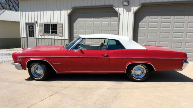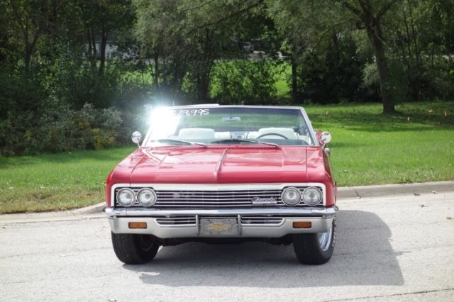 | 1966 Chevrolet Impala SS Convertible a 454 V8 Engine/ Automatic TransmissionRed exterior and white interior Power bucket Seatsmiddle consoleNew Power Convertible top Power Brakes/Factory AC Give us a call today 844-652-8767 This Car is located in our showroomWE FINANCE /DELIVER AND SHIP WORLD WIDE |
