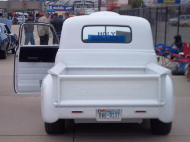 Six year old nut/bolt frame off professional restoration by owner.Original frame with a TCI 4-link coilover rear suspension and 75 Camaro subframe up front.Frame sand blasted, primered, & painted chassis black 10bolt Camaro rear axle17 gallon frame mount fuel cellFront disc brakes with booster master cylinder located under cabTilt automatic column with power steering and 13.5 Grant steering wheelOld Air A/C and heater with painted to match under dash vents and. VDO analog gauges1994 genIII Chevy V8 rebuilt with Edelbrock intake and carb, finned valve covers and air cleaner, turbo350 trannyPower one-piece windows from Electric-lifeStock bench seat with 4" dropCab has been shaved (firewall, cowl, passenger side vent, & driprails)Bed has oak wood, shaved stakepockets, teardrop corners, and rounded lower bed supports, and inner fendersTailgate has hidden SS linkageNew wiring, seals, glass,and all chrome trim. Amazing truck! I have had my fun in it the last six years and won many shows. Selling so I can start a new build.