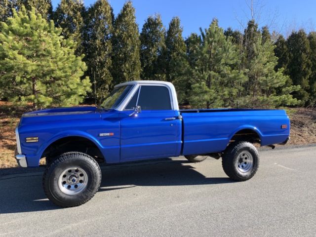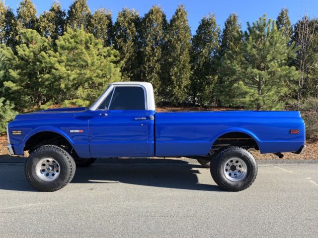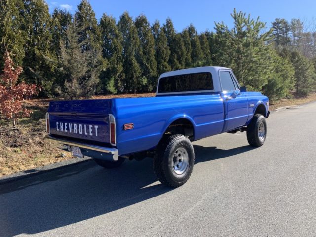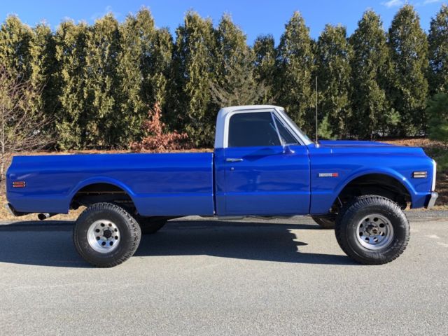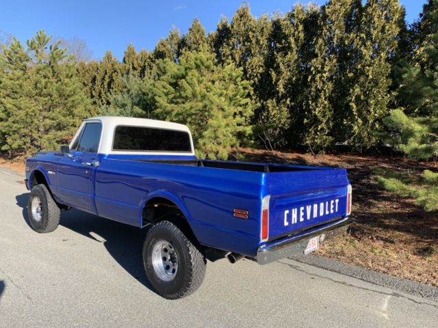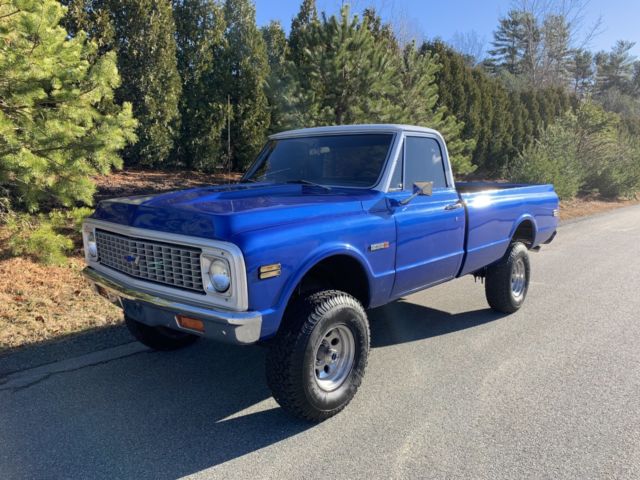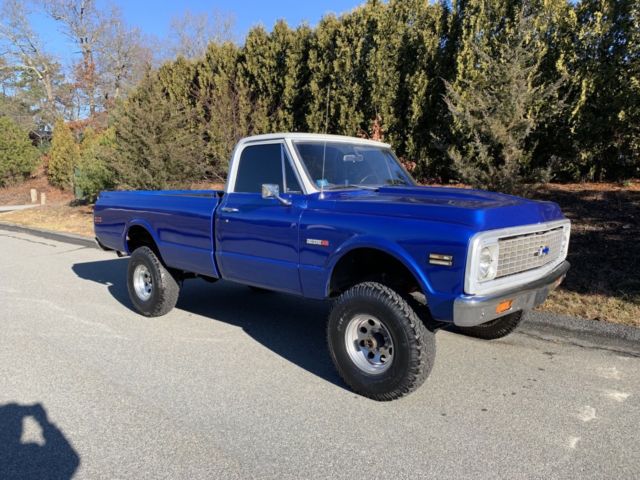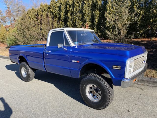 Up for auction is my 1971 Chevy k10 4x4 the was purchased from California about 16 years ago. And the truck has a frame off restoration done to it. The truck has a Chevy 350 4 bolt main with a comp cam and head work it sounds real healthy back by the original 4 speed transmission with power brakes and power steering. It has a 4" rough country lift kit with 33" tires It really sits proud. This truck is and was always a rust free truck. The paint on the truck is in great condition with no flaws and the same goes for the interior. I took pride in building this truck and it shows. This truck gets driven regularly to local car shows parades and for ice cream runs and it draws a crowd around it everywhere I take it. It's a real head turner. The truck is super dependable and everywhere in the truck works as it should including the factory tach. Im recently retired and I need to get rid of some toys my loss your gain. If you have any questions about the truck please feel free to message me thanks. Also the truck does have factory air conditioning. And I have a clean and clear transferable registration in hand |