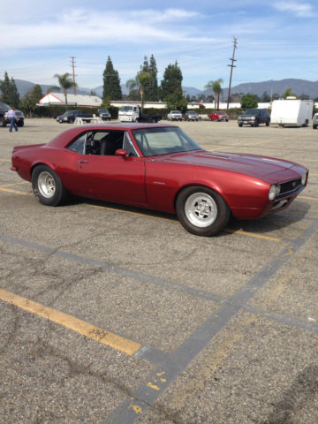 '67 Pro Touring/Pro Street67 Camaro Coupe original 4 sp car - black plate. Motor - 383 4 Bolt main - scat crank & Rods-isky Cam - Edelbrook aluminum performer RPM Cylinder heads. rpm air gap. 750 Demon. MSD Billet. Headman headers - aluminum radiator - hi flow elect fan - 120 amp alt. Trans - Built 700R4 w/custom converter by four Cs Whittier - Trans cooler inland empire aluminum 3" driveshaft. Rear-end - 35 splire 9" Currie 411 gears spool ( I will put a Detroit locker in for $1300 if desired). Rear 4 Link Coil oversFront - Chriss Alston front subframe welded connectors certified cage (6k alone)Brakes - Big Wilwood slotted on all 4corners - Wilwood master cylinder line lock. Interior - By Rauls-OntarioAll new custom seats. door panels. custom back seat w/storage in black suede sim leather w/red piping - new headliner - new carpet - insulated floor. roof etc. Pioneer stereo system w/subwoofer - auto sound kick panel speakers - classic auto air conditioning that works - Covins Classics Carson fiber gauge instrument panel with autometer silver faced ultra lite gauges B&M Hammer shifter - line lock. Electrical - by Wildomars in WildomarHid headlights - Hid running lights - LED tail lights25 gallon Jaz fuel tank (gauge works) - optima batteryNew grill assembly - SS badges (clone)2 1/2" w/FlowmastersMickey Thompson tires - weld orig starsI have all window mouldings. door locks. trunk lock & headlight Bezels. I am asking $29k. no trades. $22k roller no motor/no trans. Currently this car is a street driver. urn key ready. clean California title !Have receipts. Selling As-Is.
