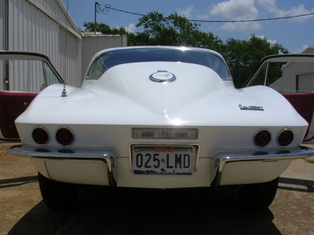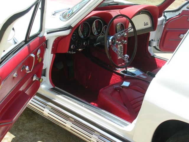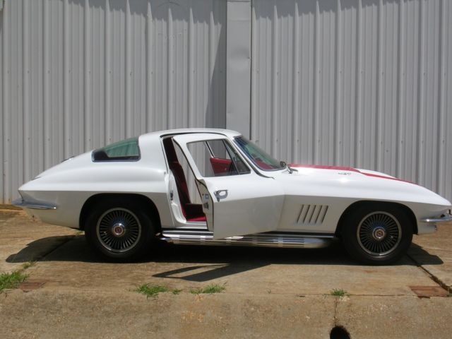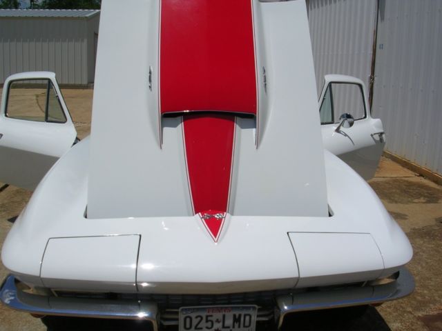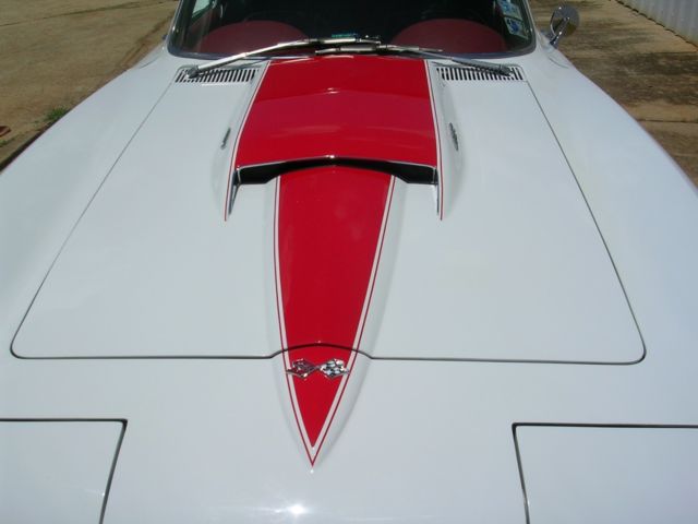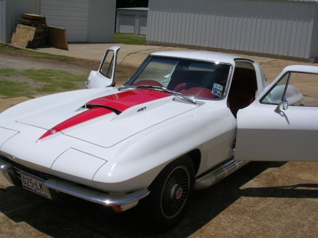 1967 Corvette Stingray Coupe L-68 427/400 4 Speed, Complete Frame Off Restoration, Breathtaking White With Red Stinger Hood Exterior With Complete Red Leather Interior, 427C.I. 400H.P. (Not Original Block)Tri- Power Intake With Three Holley Carburetors . #M-21 4-Speed Manual Transmissio, #G-81Positraction Differential, #U-69 Am/Fm Radio, #N-89 Bolt On Aluminum Wheels. #QB-1 (5) Red Line Tires, #N-14 Factory Side Exhaust, A-02 Tinted Glass,K-66Transistor Ignition, 6500 Redline Tachometer, 80 Psi Oil Pressure Gauge, Paint Ermine White (Trim Tag # 972, Red Leather Interior (Trim Tag #408)- Completely Rebuilt With All New Chrome, New Suspension, Big Block Rear Sway Bar, New Fuel System, New Brake System, New Cooling System- Frame Off Restoration (Back To Original) 5 Years Ago -Less Than 300 Miles. Always Garage Kept And Covered In Excellent Condition, Owned For Over 20 Years