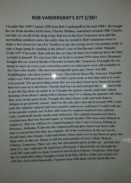Please NO games ask all questions before submitting a bid and if you require a loan or someones permission to purchase this car please get approval before submitting offers. Please read entire ad, call or ask questions prior to submitting bids. Thanks CALL ANY TIME 276-988-2478 PICTURES DO NOT DO THIS CAR JUSTICE!! IT IS A MUST SEE!!! UP FOR SALE... REAL DEAL 1969 X77 D80 CODE Z/28ORIGINAL TRIM TAGCORRECT DZ 302CORRECT INTAKE, HEADS, CARB, INTERNALS ETCCORRECT MANIFOLDS WITH SMOG EQUIPMENTMUNCIE 4 SPEED ( REPLACEMENT TRANS) 12 BOLT REAR END MULTILEAF SPRINGSCORRECT CODE 52 GARNET RED / TUXEDO BLACK STRIPESCORRECT CODE 718 RED STANDARD VINYL INTERIORCORRECT 8k TACH / CENTER FUEL GAUGED80 FRONT & REAR SPOILER PACKAGECORRECT FIRESTONE SPORT CAR 200 TIRES POWER FRONT DISC BRAKESMANUAL STEERING BUILD DATE OF CAR 09A (BUILT 1ST WEEK OF SEPTEMBER 1969)ENGINE CASTING # 3970010ENGINE PAD STAMP # V0808DZ EVERYTHING WORKS AS DESIGNED! CAR PERFORMS AS IT SHOULD! THIS CAR HAD A FULL FRAME OFF ROTISSERIE RESTORATION AND IT WAS COMPLETED IN 1990 YES!!!!! THAT'S RIGHT 28 YEARS AGO!!! AND I'm TELLING BOYS AND GIRLS SHE LOOKS LIKE SHE WAS COMPLETED LAST WEEK! THE PAINT IS FLAWLESS AND STILL LOOKS WET!!! I'VE OWNED MANY 1ST GEN CAMAROS AND MORE THAN A HANDFUL OF SOME OF THE FINEST 69 Z's AND THIS CAR TAKES THE PRIZE!! IT IS THE BEST OF THE BEST! CRISP AND CLEAN SHOW QUALITY EVERYWHERE YOU LOOK! THE PAINT/BODY LINES ETC ARE MAGNIFICENT!! NO DISAPPOINTMENTS OR APOLOGIES!!! IF YOU COME LOOK AND FIND ANYTHING YOU DO NOT LIKE YOU WILL NOT BE OBLIGATED TO BUY! PlEASE READ BEFORE SUBMITTING OFFERS: We are a Va dealer, We are not looking for any trades at this time, We do reserve the right to end this listing at any time for any reason. All of our classic car sales sold are AS-IS NO WARRANTY (NO REFUNDS). We welcome ALL buyers worldwide and can help you with shipping quotes. We strive to describe all of cars as humanly accurate as possible but always recommend you come look for yourself or send a 3rd party inspector as NO two opinions are the same. What we consider nice you may not?? If you refer to yourself as "very anal" "very picky" or in search for a "flawless" "perfect" show car I suggest you look elsewhere! These are OLD cars they are not perfect nor flawless and ALL require attention. Not being harsh just being honest! Thanks FEEL FREE TO CALL ME ANY TIME AT 276- 988-2478 WITH QUESTIONS THANKS FOR LOOKING Below is some pictures for your viewing, They are very large please give them time to load |