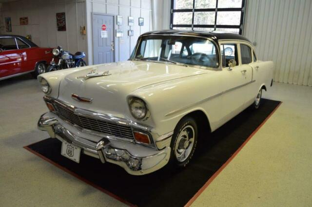 1956 Chevrolet 150 4 Door - YouTube Video will open in a new window This 1956 Chevy 150 4 door sedan was frame-up restored in 2016. This is a comfortable riding and driving machine. · Always garaged · 250 straight 6 cylinder engine · 3 speed manual transmission on the column · Stock rear end · Exterior two-toned finish · Rechromed bumpers, grill and trim · New front and rear Chevy insignia's · Show quality tail light assemblies · White Rally wheels with chrome beauty rims and center caps · Brand new raised white letter radial tires · Detailed engine compartment · New chrome valve cover and side plate · New battery · New wires · Original air cleaner · New black and white interior including the door panels, seat covers, seat belts, headliner and carpet · Aftermarket AM/FM stereo · All original-like handles and window cranks · Carpeted trunk space · Spare set of beauty rims and center caps · Original undercarriage with minor surface rust · New exhaust and muffler · New shocks · Brake drums turned and new shoes installed · Clear glass This is a very solid car that you could drive anywhere! For more information please contact Steve at 770-401-7877 or at sparkysmachines@comcast.net |
