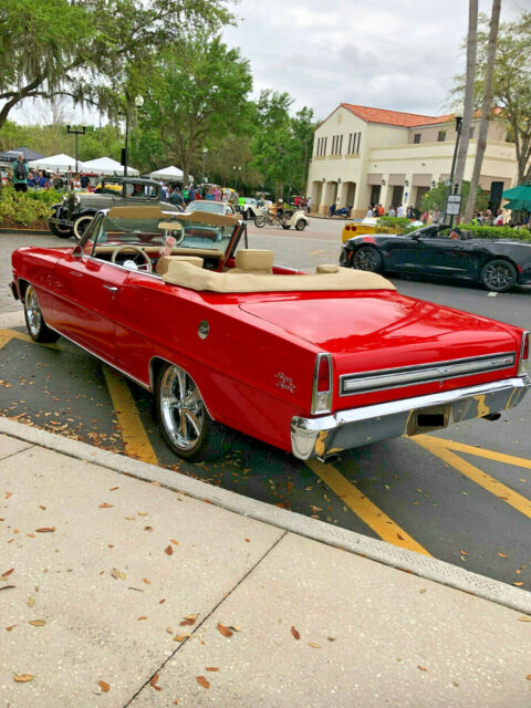 YOU ARE LOOKING AT A 1967 CHEVROLET NOVA SSCONVERTIBLE ALL CUSTOM LIKE NEW IN EVER WAY EVERYTHING LINES UP BEAUTIFULLY & THE CRYSTAL RED PAINT IS FLAWLESS. I AM A CAR BUFF AND I HAVE OWNED THIS BABY FOR 13 YEARS.IT HAS EVERYTHING; 350 ENGINE WITH FLOW MASTERS & SOUNDS GREAT (MELLOW) WITH A 700R4TRANSMISSION BOYD CODINGTON 17'' WHEELS, MERCEDES CAMEL FLAWLESS TOP EVERYTHING LINES UP I'M REAL ANAL ABOUT MY BABY. I COULD GO ON & ON ABOUT THIS BABY IF YOU WISH TO PHONE ME AT 760-271-9496 BILL MITCHELL I WILL BE HAPPY TO ANSWER ANY QUESTIONS |