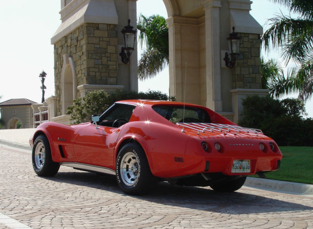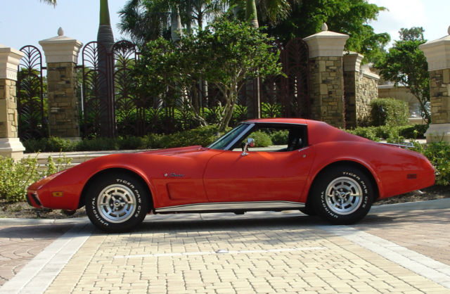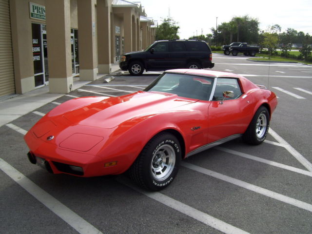 | 1975 Corvette Stingray . Numbers matching front to back . 50 ci L48 engine . 3 speed Automatic transmission . ower Steering . ower 4 wheel disc brakes. nbsp; AM/FM radio ( original works ) rear window defogger . Beautiful black leather seats . Ice Cold Vintage A/C . Luggage rack. Car runs and drivers flawlessly . Everything works as it should except the clock . Paint is beautiful . Car sold new at Muchard Chevrolet in Victor NY . Original owner records. Very Nice Car. If you are looking for a nice unmolested original corvette . this would be the one . Lady owned and well maintained . Look at the pictures . also have video. Questions call Laura 239 290 9967 or Norm at 239 370 9233 |