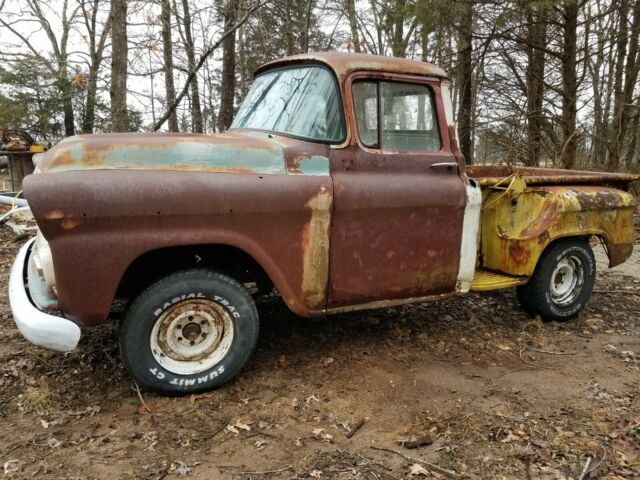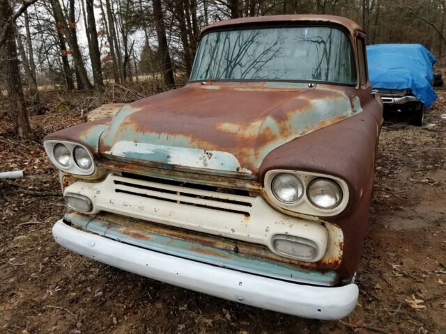 1959 Chevy shortbed, pretty solid with original metal. It is a good truck that has some real potential. Rat rod, you could leave it the way it is. If you're wanting to restore it will require a full restoration and typical sheet metal replacement. This truck does steer and roll. I do have a clear title. Will help load. If you would like photos of any specific areas, just let me know. I also have a 2005 shortbed 4x4 truck 5.3 LS engine, "rollover" good drive train 150K miles.Sold separate if interested, $1000.00 for it if you buy the 59 Chris 417 260-1698 1955, 1956, 1957, 1958 |