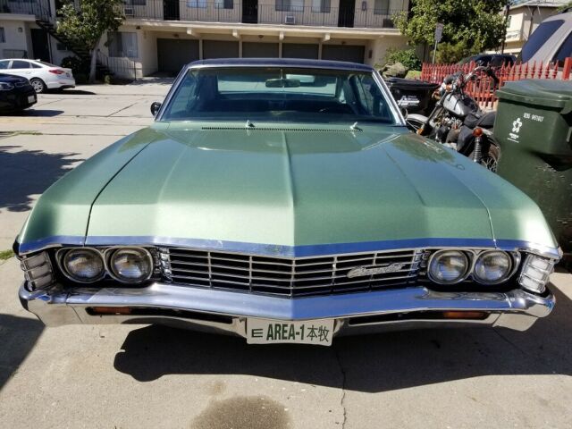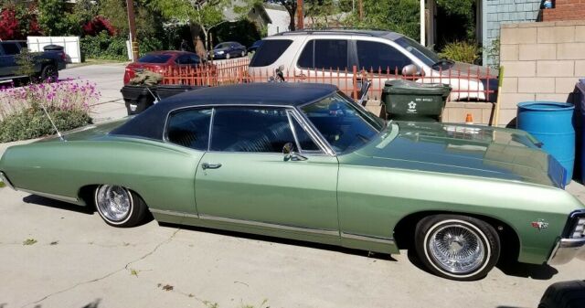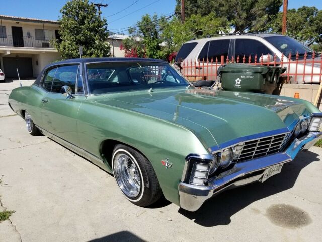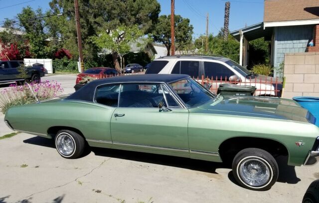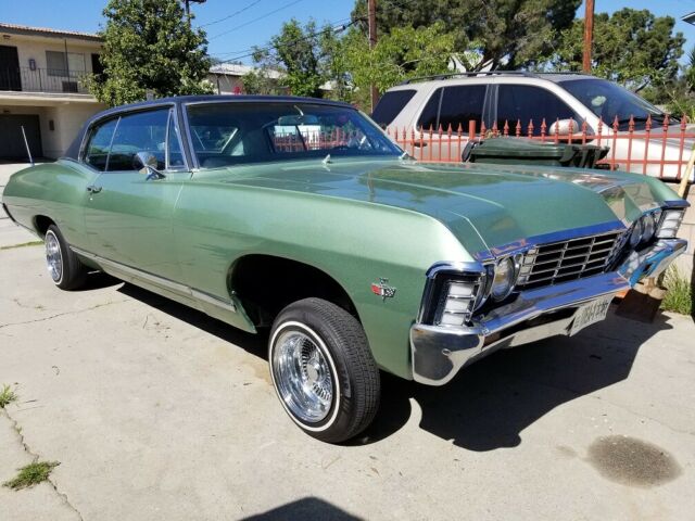 1967 Chevy Caprice Low rider - Super clean - Metal flake Green with vinyl top - black interior - stereo Wire wheels with complete new hydraulic system - front back side to side - Lifted Engine and transmission are strong - runs great! Must see for the Low rider enthusiasts - 45k miles I have new parts - Chrome alternator - Chrome water pump - Chrome power steering pump Possible trade for Harley Davidson Street Glide |