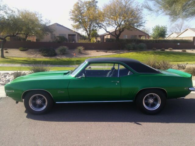 This car actually was a carport find in a retirement community it was purchased from the second owner who purchased it from the original owners in the same community. It has an extensive story to it seems like it does check out due to the delivery date at the dealer and approximately 8 mo. later pick up! He wanted a Rally Green SS, they found him this LM1 gave him a discount try to convince him it was the same as SS! He then reneged on the deal.It sat in the Cody Wyoming dealership until August of 1969. The same guy learned he was diagnosed with cancer and the aunt and uncle went and had the same car decked out with the D80 spoilers, Super Scoop Cowl Hood ( naked shell)and had SS trim installed.Painted to match the car. He never took ownership of the car (Aunt and Uncle did)but he got to enjoy it for a while before he passed away. Aunt and uncle kept the car on their Farm back on a dirt road stored away for many years later retired to Arizona then sold it to the guy I bought it from. There was just carports in this area paint seem to be a little weathered.Specifically lacquer checking small chips some have been touched up and small scratches( shows awesome patina) but still shines! as well as Chrome super nice no pitting. under the hood and interior completely original. A little bit of Dash warping but no cracks all original glass headliner nice carpeting slightly faded but very little wear as well as seats rear package tray still has original metal covered speakers in excellent condition as well as kick panel metal speaker covers .Vinyl top never replaced and is in great condition with no bubbles underneath ! A very well-preserved budget muscle car Camaro. Every single number on this car matches including alternator, distributor carburetor,transmission,engine and rear end! Also has org.space saver spare. This is truly an unbelievable car that drives out like a 77000 mile car and looks it! Very solid Western car that could be brought to the next level easily. I have plans to purchase property up in the mountains only reason for selling it and if my 70 Malibu which is also a Survivor sells first I will keep this Camaro but Camaro is worth far more so call me if you're seriously interested but it definitely is not a restored car however is a limited production muscle 69 Camaro very similar to the SS but much rare then both SS or RS this car is originally equipped with the LM1 350 4-barrel M20 4-speed with Hurst shifter multi Leaf rear springs and 12 bolt posi 3.31 rear end and performs like a little rocket!.. I also found the original bow ties in the box since 69 and reinstalled them on steering Grill and rear. This car was equipped with bumper guards as well I took them off because I don't care for the look, they will be included. Buyer can have the car with either newish staggered 15 inch Cooper GT cobra tires and 15 x 8 torque thrust American rims or 14 by 6 steel rims with brand new Milestar 215/ 70/14 inch white wall tires and hubcaps...original wheel covers included either way and the factory air pump which I got also with it! It will be the only time on eBay... after that I will have other online magazines to market it and or the Chevelle. Please call me at 623- 249-o968 thx.
