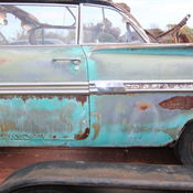 | 1955 Chevrolet Belair Hardtop, most original parts (see photo). Has been soda blasted, trim rechromed, engine cleaned. A great project car, little rust, kept garaged for past 12 years since body stripped. |