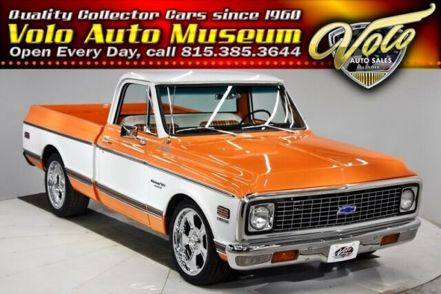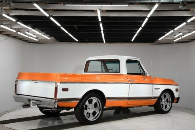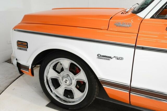 Wow, this one hot looking shortbed! The greatness doesn't stop there, its loaded too. The Highlander was a limited edition that even most truck aficionados are not aware of. Basically it was a deluxe package of options and upper scale trim. This truck has it's original option sticker on the glovebox door. EXTERIOR: It is an eye catcher, the bright orange and white two tone with all the deluxe trim. Also has brand new 20 inch chrome wheels with performance... tires. It was sold new in Nashville, we bought it out of North Carolina. It is a good clean southern body. The paint job is new this year, has a very glossy, straight finish. All of the trim has been replaced. In front the grill, chrome bumper and emblems are new. The moldings down the sides, antenna, wiper arms, mirrors, handles are new. In back it has new chrome bumper, taillight and tailgate trim. Inside the bed is not beat up at all. It's real clean and straight metal, they must have used it for hauling pillows! It's painted glossy orange. New windshield and vent window glass. All new rubber gaskets and weatherstrips. Door jambs are slick, new shiny sill plates. INTERIOR: Completely restored inside. Has the same two tone as the outside. The metal has been painted glossy orange. Very cool looking vintage orange plaid seat inserts. The restorer said he paid a lot for that. New upholstery, door panels, armrests, handles, window cranks, visors, carpet, dash pad etc. Dash area looks great. New chrome instrument bezel, new heater control unit, new chrome a/c vents. It has a factory tilt column with new deluxe wheel. Inside the glovebox has new liner and original option sticker. ENGINE COMPARTMENT: The motor is a 396-350 hp from a 68 Chevelle SS. It was apart and gone through less then 100 miles ago. I open the hood and was immediately impressed, show quality. Very freshly restored. The inner fenders, core support and bottom of the hood are perfectly smooth clean metal painted satin black. The jambs and firewall are painted gloss orange. All the components look new. The air conditioning system has a lot new parts and is upgraded to R134a freon. The alternator and new fuel pump is new. Has a new upgraded aluminum intake and Holley carb. Dressed up with new stock chrome air cleaner and valve covers. Radiator, fan, shroud and hoses look new. It features power steering and brakes. UNDERSIDE: The underside is very clean and solid. I dont see any patches. It's been cleaned and painted. The front end was just completely rebuilt. Bottom of the motor still looks fresh, has new motor mounts. The Turbo 400 automatic was just completely rebuilt. A set of headers feed a new dual Flowmaster exhaust system with stainless tips. There are new shocks all around, new rear springs. New panhard bar. It has also been upgraded with new disc brakes at all four wheels. This is a head turner. Has the desirable features people want in a truck- shortbed, deluxe trim, a/c, power steering and brakes. Having a big block and great colors certainly makes it even better! I, Jay Grams, take pride in personally writing the descriptions for virtually every car for about the last 30 years now. A significant amount of effort goes into fact checking. What I am offering is my professional impression of the vehicle. Our salesmen are happy to assist with descriptions and making sure your questions are answered. One great suggestion is letting us do a walk around video that explains the car's condition in detail. Don't be intimidated, contact sales now for a no pressure, no hassle experience! 815-323-6536 9-5 central Answered ASAP Air conditioning Power steering Power 4 wheel disc Tilt deluxe wheel 20" wheels Deluxe trim Big block