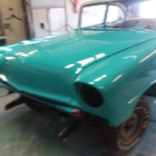 1956 Chevrolet two door. This car is a Delrey 210, all original. Seats have been upholstered a few years back. Rubber and window seals have been replaced. Wheels are black powder coated with white pin stripes and spider wheel cover. Please inquire if you have any questions. Thanks for your interests. |