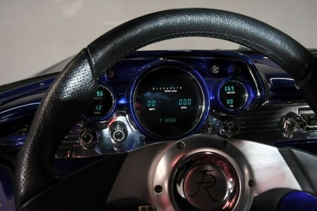 $325,000 build and only 836 miles since finished! Wow, where to start? There is a 100 page color magazine by Super Chevy entirely about the build of this car. Only the best of the best parts and workmanship went into building this "Ultimate 57". The result is a turnkey, reliable, comfortable car with drag car power, sportscar handling, luxury car features and knock your socks off show car appearance. Named "Project American Heros", the build of this car was... to raise money and awareness for the Armed Forces Foundation. They help our Veterans in need. The world reknown Roadster Shop built the car with major contributions from top names in hot rodding parts manufacturers. The only piece of this car that was not brand new was the firewall with the vin number! Really, every single part is new. Not just any aftermarket part either. Major manufacturers donated their best components for this worthy cause. The car made its debut at the Sema show. Super Chevy magazine followed the progress of the car in their magazine then compiled the stories into it's own special edition. It didn't just make the cover, it got it's own magazine! There is a lot to read but this car has a lot to offer. EXTERIOR: Except the firewall all the metal is new. Cars Inc provided high quality reproduction metal. This car was fully assembled and fitted then taken apart for paint. Then an incredible House of Kolors Majik Blue Pearl paint was applied. American flag was airbrushed in place of the stainless inserts on each 1/4 panel. Minimal 210 trim was used, no door handles or emblems. Doors and trunk open by remote. A rich black cloth top was installed. The entire top frame assembly and hydraulic system are new. Headlights have colored halos. Great looking set of staggered size Intro wheels with performance tires, 18s in front, 20s in back. Of course all new glass, chrome, stainless trim, rubber etc. INTERIOR: Ahhh, smells like a leather store. The interior has recently been completely updated. Very deluxe custom leather seating and upholstery. Bucket seats front and back with full length custom made console. Dash is beautiful-paintrd body color, has blue Dakota Digital gauges, plenty of billet trim, custom steering wheel on tilt column. Everything is new- American Autowire, Dynamat, retro stereo with 4 speakers and sub woofer. Has Hurst Pistol grip shifter. ENGINE COMPARTMENT: Of course it is stunning to see, it has glass finish paint and many polished parts. Features include Classic Auto Air system, hydroboost power steering and brake system. The star of the show is the Smeding Performance 572 big block with an unbelievable 717 horsepower and 709 lbs of torque! They go the extra and only the best parts are used for maximum reliability. They start with a Dart block and assemble using forged steel crank, Ross pistons and they internally balance each part. A set of RHS Pro Action aluminum heads were slightly reworked and installed. With 9.9:1 compression running pump gas does the trick. Oh, you will be visiting the gas pump. Sucking in the air is a big 950 cm Holley carb, letting it out is a set of Sanderson headers. MSD provided the ignition system and high torque starter. The front of the motor is fully dressed with polished components, March billet serpentine pulleys and brackets. It's all kept cool with aluminum radiator, polished hard hoses, and dual electric fans. All the soft hoses are braided stainless. Has matched set of ustom air cleaner and valve covers painted body color. Has a really slick set of hood hinges. TRUNK COMPARTMENT: Fully boxed and upholstered to match the interior. Even the hinges are upholstered. Has a built in storage compartment and CD changer. There are dual batteries behind the panel with built in charger and there's a shut off switch. UNDERSIDE: Of course you could eat off the bottom, it is restored to the same quality as the top. It features a super strong, smooth, clean looking Stage lll Roadster Shop chassis. The one piece 4x4 frame rails with dual level tubular cross member easily handle the big horsepower. It has been painted body color. It has a Heidts Super Ride ll suspension with tubular stainless control arms, urethane bushings and sway bars. It is independent in front and 4 bar triangulated in back. The steering is a Flaming River rack & pinion. The adjustable ride is provided by Air Ride Technologies. It is their Shock Wave system, air bag at all 4 corners. A lowered stance is also in part to 2 inch drop spindles and the frame is dropped 3 inches in the center. The trans is an electronic shift TCI Streetfighter 4L80E with overdrive, built and tested to handle big horsepower. All the related parts are the best- flywheel, torque converter etc. Moser provided their M9 fabricated rear end with 3.73 Auburn posi gears. There are SSBC disc brakes at each wheel with Turbo Slotted rotors and 3 piston calipers. Rock Valley Auto Parts supplied a polished stainless fuel tank. The exhaust is a fat 3 inch stainless steel Bassani system that is nicely tucked into the chassis. It would easily cost $350,000 to duplicate this car. It may be hard to comprehend but every square centimeter of this car was built to high end standards. Comparable cars have recently been selling at auction for 1/4 million $. This world class car is a bargain at $167,998. I suggest you buy it and you use it. Way too much good stuff went in this car to let it sit! I, Jay Grams, take pride in personally writing the descriptions for virtually every car for about the last 30 years now. A significant amount of effort goes into fact checking. What I am offering is my professional impression of the vehicle. Our salesmen are happy to assist with descriptions and making sure your questions are answered. One great suggestion is letting us do a walk around video that explains the car's condition in detail. Don't be