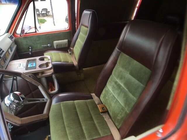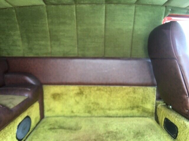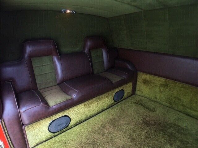 The goal has been to keep it as "it was 1974" and that's what this is: a Retro Time Capsule. Since the original owner wanted both a work van and custom van, he built this shorty with that in mind. There are two Mustang Mach 1 seats up front, with matching velour panels and two passenger bucket seats build into a divided wall in the back. The same velour was used on the roof and matching door panels. There is only one small nick in the entire cabin. The driver's seat has a small tear that I have covered up for 10 years and during that time it has not grown in size. It has a period correct "octagon" wood and chrome steering wheel, that has a unique design unlike other octagon wheels I've scene. The dash is in great shape, with a period clock that was installed in the 70s. The in-dash cassette player works as a radio, but the cassette player will no, as a copy of Aerosmith's "Toys in the Attic" has been stuck inside there for over a decade. I would put an in-dash 8 track/CB combo in there if I kept it. Exterior: The original body is straight and true. Although it is a factory orange color, it looks like there may have been a re-spray at some time, but that had to be in the mid 70s, judging by the patina and color and as you can see, it is holding up very well. The chrome and bright work are all there and in great shape It also has period correct custom chrome hinges, and cowl. No holes cut. NO sunroof, vent or windows, which tend to leak as they age. Doors, including slider are solid. It also has straight really nice chrome bumpers and rear pop out windows. Glass is all good and window roll up and down as they should. The Passenger wing window recently broke but I have not had time to fix that.