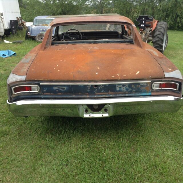1966 Chevy Chevelle for sale born in Atlanta, GA and raised in Radford, VA. This car was taken off the road in 1985 to restore. About 3/4 of it was walnut blasted, and the car has been stored in a garage in Shawsville, VA until the day I bought it. I have no time to finish it, too many projects already. As you can see in the pictures, the floors are perfect in it inside of the car. I just installed a new 3-piece trunk floorpan with body to frame braces, installed left and right lower rear quarters patch panel with floorpan drop downs, iinstalled new patch panel underneath the windshield, and the rear glass does not need one because it is nice and solid. 98% of the metal work is finished. The front fenders on both sides will need the lower patch panels. The hood is salvageable, but it has some rust on the front of the hood. The original quarter panels are nice and straight and the top is good, not dented up. The frame is clean and not rusted out. It appears to me that it has been hit on the right front at some time, and the front frame horn appears to be bent in about an inch. The engine is a 350 cubic inch, that is a 4 bolt main, that came out of a 2 ton truck. The engine was rebuilt approximately 8 months ago, and removed from the truck because it was a total wreck. It has a 350 automatic transmission, was told it came from a 74 nova that was hit in the rear end,so i dont know any thing about it, it has a one legged rearend not sure what gear it is, The engine is just sitting in the car, not bolted up, with no starter, no carburator, no distributor or plug wires. The dash is original, unmolested, and it has the original glovebox and radio still in place. also all the glass is there the windshield is cloudey all the way around the edges will need replace all windows rool up and down with ease, I'll be leaving on vacation on July 3rd in the evening and will be back on July 7th late evening. I may have missed something, so either call me at 276-733-4818 or write me through Ebay. Thanks, Gene