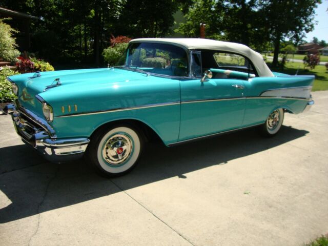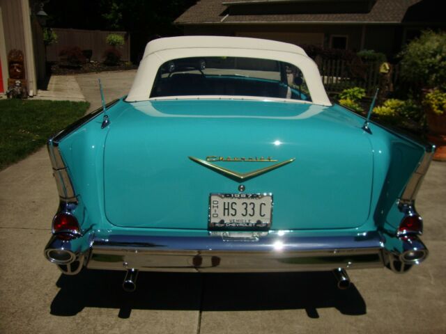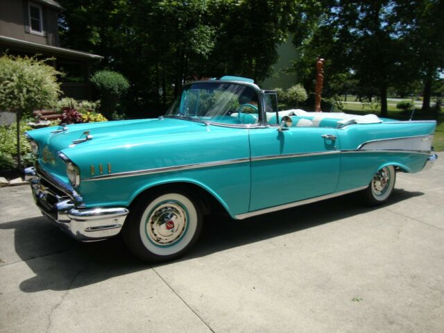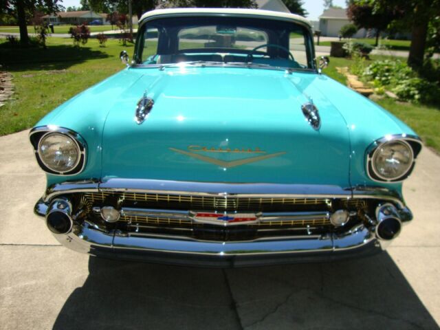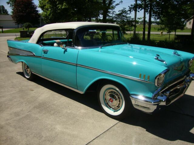 Numbers matching 283 power pack options include: 283 V8 4 barrel, power glide automatic, dual exhaust, power steering, power brakes front disc breaks added for safety, Wonder bar radio, dual antennas, white wall tires "radials", full wheel covers with spinners, nut and bolt body off frame restoration. They do not get any better than this car. The Tropical Turquoise paint on this car is flawless. I could write paragraphs on the four year restoration that has been done to this car. You must see it or have it inspected, it is truly unbelievable!If you would like to get a hold of me: Gary @ (419) 230- 2253