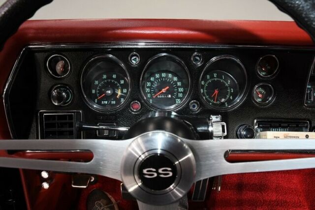 Incredible rotisserie restoration just finished. Unbelievable detail, better then new! Restored as the most ultimate LS-6 convertible in the country. Good news, it is a tribute. If it were a documented LS-6 with these colors, features and condition it would be $400,000 plus! EXTERIOR: It's a black mirror! They started with a rust free car. The panels are laser straight and fit like a Mercedes. The paint is glass. The stripes are the correct dimensions, so smooth you can't feel... them. Has a functional cowl induction hood with pins. Every single piece of chrome, stainless trim, emblems etc is new. Every weatherstrip, seal, gasket is new. All the glass is new. The black convertible top is tight as a drum. The top frame is restored, painted, new weatherstrips. SS wheels are new with new reproduction Polyglass tires. Has correct T-3 headlights. INTERIOR: That red interior against the black is killer. It is completely new down to the smallest detail. It's all the same color red throughout too. Seats are all new including cushions, seat tracks, headrests, plastic trim, chrome trim and the upholstery fits tight as a drum. Door panels, armrests, handles and window cranks are new. Brand new red GM seat belts. New console with the correct Muncie shifter and chrome ball. The entire dash is completely restored, even if you look from underneath. The instrument bezel is new, all the chrome trim sparkles. Knobs, heater controls, gauges, kick panels, visors, mirror, ashteays are new has correct 6,500 redline tachometer. New deluxe wheel on a tilt column. Has an original AM 8-track stereo. Inside the glovebox looks brand new. ENGINE COMPARTMENT: Has a genuine, legendary LS-6 454-450 hp motor. Purchased complete from Don Garlits. Has correct "512" block, square port heads, matched aluminum intake, complete smog equipment, correct GM hoses and clamps, deep groove pulleys, correct valve covers etc. Every part is new or restored- alternator, power steering, cadmium plated brake booster, wiper motor, wiring harness. Everything is painted in the proper finishes. The cowl induction system is complete and working. Has Delco battery topper and correct spring clamp cables. It is detailed immaculately. TRUNK COMPARTMENT: Pristine condition. Clean metal, has the GM spatter finish paint. Correct rubber mat, brand new Polyglass tire and SS Rim matches the other 4. The jack is brand new, still wrapped in plastic. Bottom of the trunk lid and jamb are painted high gloss black, new weather strip and stickers. UNDERSIDE: Oh my God! Holy sh@#! AThose are the 2 comments people make when they look under this car. It's that nice. Incredibly detailed. All of the metal is smooth and clean- the floors, frame and suspension parts. The floors are a glossy red oxide color. Chassis is semi gloss black. All of the suspension and steering is new. It's detailed right down to the assembly line stickers. Fuel tank is polished. All new brake system including e-brake. Has disc in front. New correct exhaust system with stencil markings. Has correctly coded M-21 4-speed. Has 12 bolt posi rear and F-41 suspension. Incredible! This car has only 11 test miles. It is spotless throughout. The 70 Chevelle SS is the most iconic muscle car made. The LS-6 was the highest advertised horsepower of all the muscle cars. LS-6 convertible is extremely rare, some say as low as 20 made. You cannot tell this from an original except the factory never made one this nice! I, Jay Grams, take pride in personally writing the descriptions for virtually every car for about the last 30 years now. A significant amount of effort goes into fact checking. What I am offering is my professional impression of the vehicle. Our salesmen are happy to assist with descriptions and making sure your questions are answered. One great suggestion is letting us do a walk around video that explains the car's condition in detail. Don't be intimidated, contact sales now for a no pressure, no hassle experience! 815-323-6536 9-5 central Answered ASAP Only 11 miles on incredible restoration! Power steering Power disc brakes Cowl induction Factory gauges Bucket seats Console Tilt wheel Deluxe wheel 8-track stereo Power top Polyglass tires 12 bolt rear F-41 suspension