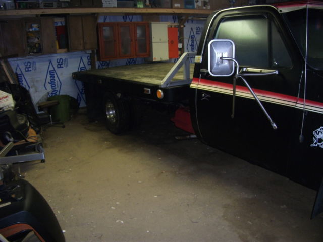 | HERE IS A 1977 CHEVY TRUCK 1 TON DUALLY WITH A STEEL & WOOD BED. BOARDS ARE TUNG & GROOVE 11/4 THICK. HAS REESE HITCH SET UP FOR TOWING 7 PRONG PLUG IN. THIS TRUCK HAS A 1981 CAB & DOG HOUSE WITH ALL NEW PARTS. THIS IS A RUST FREE CAB. HOOD / FENDERS / INNER FENDERS / DOORS / CAB CORNERS / ROCKER PANELS ALL BEEN REPLACED. ITS BLACK WITH RED / YELLOW STRIPPING. INTERIOR IS ALITTLE CUSTOM MADE. STILL HAS ORINGINAL BUNCH SEAT BEEN REDUNE A FEW YEARS AGO. HAS AM/FM/ CD PLAYER (new). HAS A 454 CU. IN. MOTOR ALL DECKED OUT. HAS DUAL TANKS. THE RIMS ARE ALL FARELY NEW 16" WITH SIMULATORS ALL WAY ROUND. TIRE ARE STILL IN GOOD SHAPE. THIS TRUCK HAS BEEN OWNED BY ME SINCE 1990. MY FRIENDS SAY ITS A KICK ASS TRUCK. ITS READY FOR YOU TO PUT IT TO WORK. NOTE THIS TRUCK IS KEPT IN A BARN ALL WINTERS. ONLY TAKEN OUT IN THE SPRING. THANKS FOR LOOKING. |