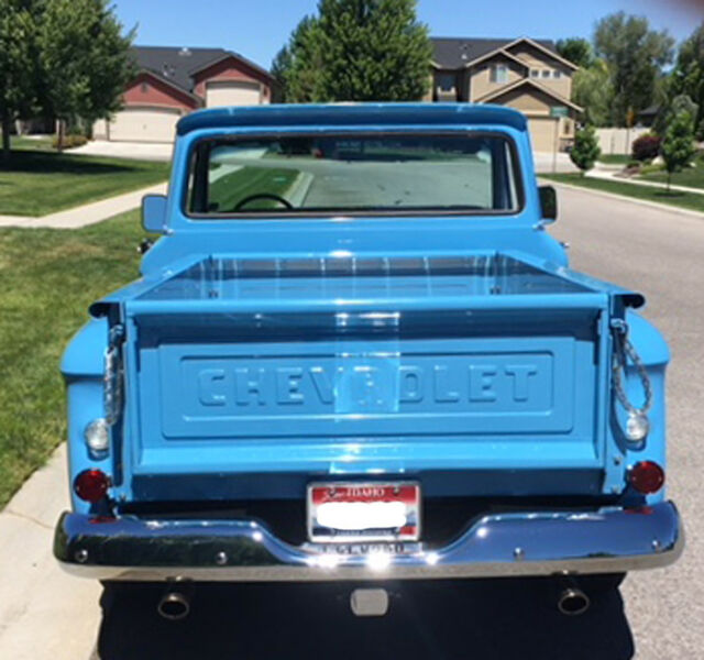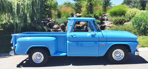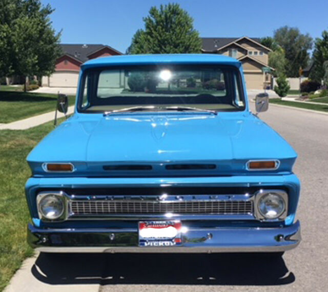 Somebody is going to get a great buy on this CLASSIC PICKUP. Buyer will get $55,000 in actual restoration receipts I spent on an 8 year body off full restoration completed by professionals. Only 2,100 miles driven since extensive First Class restoration. Excellent attention to details and NO RUST anywhere on this pickup. Look up current NADA book value for this Short Stepside 66 and you will see high retail at $57,090 and average retail at $29,370. Current auctions support values in excess of $50k for this pickup in restored condition. I've set my reserve at the AVERAGE RETAIL PRICE for a quick sale. I'm 79 and have owned and loved this truck for 45 years, but now MUST SELL! Options include...Short wheelbase short Step-side, big rear window, custom cab! Upgrades include power steering, disc brakes in front, a 300+HP 350 SBC balanced crate engine with a 700R4 four speed (overdrive) automatic transmission and 3:73 12-bolt Posi differential. Has a receiver hitch for towing, but the trailer wiring is not completed. It has never towed since restored (but it would look really cool mated to a similar vintage RV trailer).Everything on this truck is either new or rebuilt to original specs. In reality, this pickup is probably better than new. Door latches are the greatly improved bear-claw's from LMC. In the bed, you will find beautiful red oak with a clear sealer and stainless-steel trim strips. You will find the paint and body work straight and flawless. A brand new deluxe 22 circuit wiring harness from LMC ($800) was installed and all lights and etc. are new. It even has courtesy lights under the dash. NO flaws on this pickup either cosmetically or mechanically. It is kept garaged and comes with a custom car cover (new in box). No A/C, but you can purchase the complete Vintage Air A/C conversion kit specifically for this pickup on eBay for about $1,200 and there are many shops authorized to install Vintage Air in most areas. The new 22 circuit wiring harness willaccommodateA/C. This truck is located in Meridian, Idaho 83646 (for transport quotes). Willing to meet a prospective buyer at the Boise, Idaho airport, if you want to fly in and drive home. Please don't confuse or compare this to the many Chevy pickups that have only a shiny new paint job, a rebuilt engine and some new tires. This is all rebuilt from top to bottom, no expense spared. If you want cheap, go online and you'll find lots of them. If you want quality, this trucks for you.