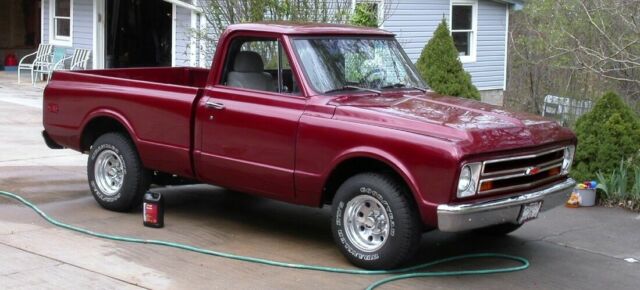 For sale is a 1967 Chevrolet C 10 short box from South Carolina. This 67 C10 is an off frame rebuild, sandblasted to bare metal and covered in dark cherry pearl paint. The '68 box features a new oak and stainless steel bed, new wheel tubs and new rear panel. The truck has 2000+/- miles since rebuild. The truck is powered by a Chevy 350 bored 60 over measuring 360 CID or 5.9 liters. This 360 small block is built with new 5140 Steel I-Beam Rods and Speed Pro H345DCP Hypereutectic Coated Flat Top 4V Pistons, new Summit 152123 heads, Howards 118001-09 cam. The intake is an Edelbrock performer topped with a new Edelbrock 1406 Carburetor. Ignition is handled by a new small cap H.E.I. system and wire set. The purchase includes a new set of Headman long tube headers. The engine is coupled to an upgraded 200-4R transmission with an FTI 2400 stall speed converter. The differential is a 12 bolt 3.73 with Eaton posi-traction unit. New 4 wheels drum brakes, wheel cylinders and new master cylinder.The interior of this truck is features bucket seats (Drivers is power), Retro-sound AM/FM/USB/Bluetooth radio with 4 speakers, tilt wheel, cold A/C, power steering, power brakes and cruise control making the total package a great driver that you will be happy to be seen driving but not so nice that you are afraid to drive it. Original grill, headlight trim and bench seat go with the truck. Great for weekend cruises or a trip to "H- Depot†|