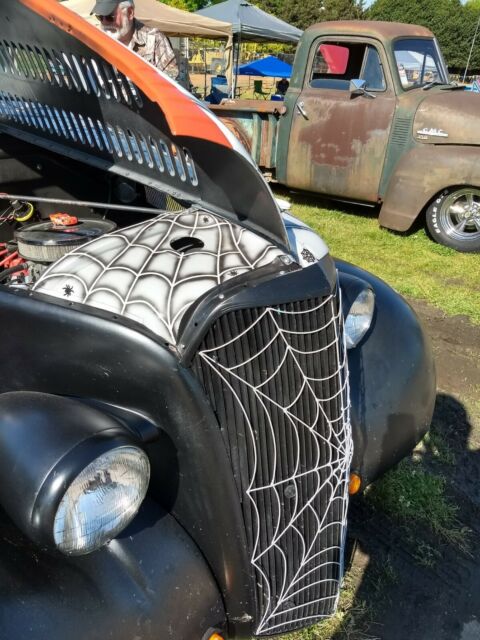 1937 Chevy 2 Door Sedan 350 with a 700 R4 Transmission (automatic) Nova sub-frame Disc brakes on front Tilt steering column New AC & heater unit (not installed, but compressor is mounted) Flat black with a rather unique paint job (all hand painted - it's not my thing, but it really is quite amazing) Drives and rides as well as you'd expect from a nearly-finished restoration of a 80+year old car. Not a replica, this is the real thing. It's heavy, loud, and gets attention. No power steering or power brakes. Mileage is what shows on the odometer, but I can't verify if that is anywhere near correct. This car belonged to my uncle (he's the car guy- always had a project to work on), until he gave it to my mom when she helped pay some of his medical bills. Cars don't pay bills, so she asked me to help her sell it. I don't know much about it, so if you want to look it, drive it, bring your person to check it out, please do. If you want to ask me for a bunch of details, I might not be able to help much more than what you can see here, but I'll try. I can send additional pictures if you want to see something specific. |