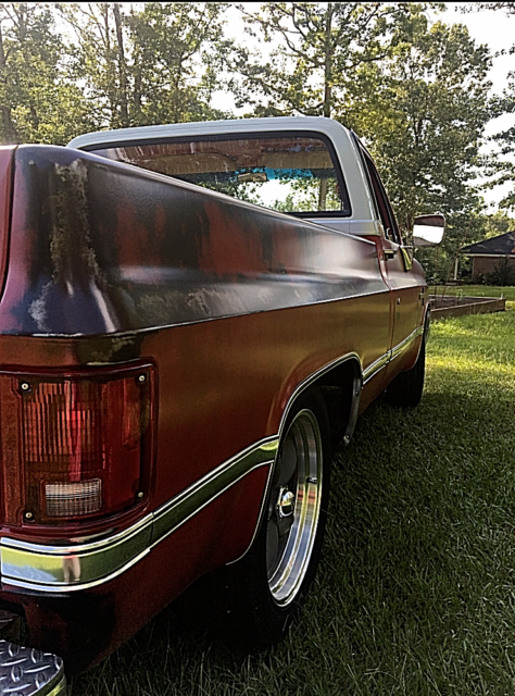 1985 C-10 CUSTOM DELUXE 305/TH350 AUTOMATIC ENGINE AND TRANS HAS BEEN FRESHENED UP 78,000 ORIGINAL MILES ORIGINAL PATINA (TRIPLE CLEARED MATTE AND SEALED) NEW INTERIOR, MOLDINGS, PARKLIGHTS, TAILLIGHTS AND SIDE MARKERS NEW 20X8 AMERICAN RACING TORQUE THRUST 2 WHEELS W/ 275/45R20 TIRES NEW EXHAUST W/TURNDOWNS NEW RUBBER BED MAT NEW WINDSHIELD NEW RUBBER ALL THE WAY AROUND DOOR AND WINDOWS NEW WINDOW CHANNEL NEW A/C COMPRESSOR, LINES, DRYER AND ORFICE TUBE NEW DASH SPEAKERS NEW CLASSIC CAR STEREO W/BLUETOOTH NEW DISRIBUTER, WIRES AND PLUGS NEW FUEL TANK, LINES, PUMP AND SENDING UNIT NEW FITECH GOSTREET 400 NEW 2/4 BELLTECH LOWERING KIT |