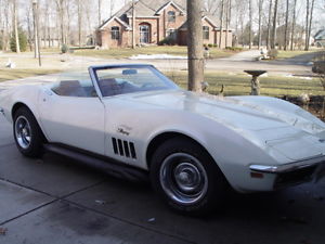 | 1969 corvette convertible. l46 350 350hp 4 speed manual transmission with hurst shifter. It was painted approximately 30 years ago and still looks good. The paint is a pearl so it has a red hue to it when the light hits it right. It does have some minor imperfections but overall pretty nice looking. Has only had 7k miles in that time period and has been garage kept. The body is very straight and has little to no rust underneath. The engine starts and runs good. It does drip a little oil when sitting. The engine has an edelbrock torker manifold. different carb and headers that were also installed at least 30 years ago. The car was a factory side pipe car but the side pipes were replaced many years ago. The interior is in good to fair condition and is showing some wear and could also stand a good cleaning. Not much has been done to the car in the last 30 years other than oil changes batteries and tires. It does not have any glaring problems but if I was going to drive it a lot I would probably upgrade the suspension and re do the brakes. The tires are relatively new and are in good condition. It does not have many options other than power steering. The radio is an old aftermarket unit that doesn't work right. It does come with the original radio. Everything works to the best of my knowledge except for the windshield wipers and squirters. It has not been driven in the rain in 30 years so that was never a problem. The top is black and in decent condition although the rear plastic is now opaque and probably needs to be replaced. This would be a great car for someone that just wanted something for a local weekend cruiser. It could be driven indefinitely as is with just regular maintenance. It would also be a great candidate for a restoration and would look very nice black as an offset to the red interior and black top. That would obviously increase the cost of ownership and value. It is for sale locally so I reserve the right to end the listing early. It is an older car and is sold as is. I am not a corvette expert but. will do my best to answer any questions or send additional pictures or info. We purchased from the family that owned it for the past 29 years. They were moving out of state. The car is very fun to drive and gets a lot of attention. The sound coming from the side pipes is incredible. |