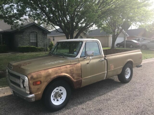 | 1970 Chevy C20 (3/4 ton) Long Bed. It has disc brakes and power steering upgrades. Runs great. Just passed Texas state inspection. Four speed on the floor. Saddlebag Gas Tanks. Sound body, no rust-thru. Title in hand. All the parts are interchangeable with the C10. Great bones. Contact me with any questions. |