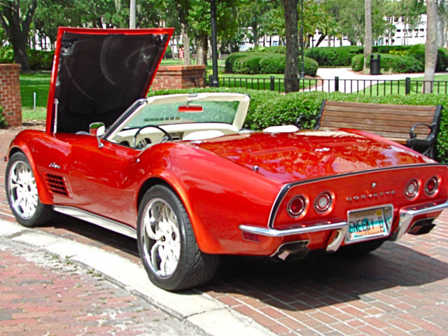 | Its not often you find one of these. Especailly completely re-done to the highest of restored levels !! The last of the "fire-breathing" high horsepower Corvette LS5 engines ( 454 / 390 hp) is installed in this beauty. The car is completely restored and is numbers matching from front to back. Its all here. Including the ( unrestored) hardtop. All original parts not mounted on car ( ex: rally wheels) are included. The car is. as stated by the auctioneers and TV broadcaster at Barrett Jackson. "This is one of the most beautiful Corvettes I have ever seen". And She is ! Equipped with all power options and accessories. this is not only a collectors dream. but a show winner at any level. Though not painted in its factory Donny Broke Green over tan interior. she could easily be put to factory paint and interior colors if new owner desired. ( Extreme Motorcar will convert her back to factory colors and interior for $ 5. 00. 00. Thats a $ 10. 00 paint job and a complete interior change . both for $ 5. 00. 00. WOW) We have all paper work and documentation . She sits on custom made 19 inch wheels painted to match interior colors. Tires are brand new. 245/40/ZR19's front. 275/40/ZR 19's rear. 10 inches in rear . 9 inches in front. Wheel and tire clearance are perfect. No rubbing. Everything is brand new. Runs flawlessly ! This is NOT your typical 70 Vette convertible. It is the king of the Vettes. the BIG BOY. With all the toys. Even the fiber optical lights have been replaced and work perfectly. Oppprtunities do not come around often to purchase a car of this caliber and restoration quality. SHE NEEDS NOTHING ! This comes out of the owners private collection. Check Extreme Motorcar com for complete restoration pictures and her extensive rebuild. Contact Bruce @ 813-841-0706. If I miss your call . please leave name and number and I will get right back to you. Good luck and congratulations to the winner. |