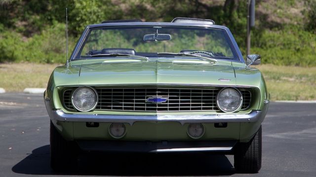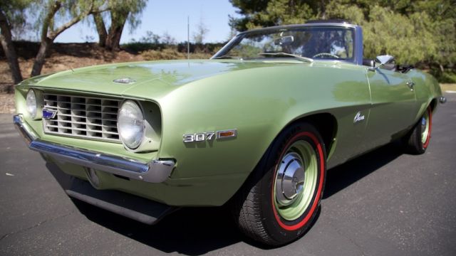 | “A Rare and Original Time Capsule” A 1969 Chevy Camaro is rare. however. finding an original convertible is as improbable as winning the lottery. So consider this a winning ticket – a wonderfully maintained “original” ‘69 convertible – from its 307 cu. in. V8 – to its fiberglass-belted spare tire and metal wheel jack mounted in the truck. It is an absolute granny car with 41. 00 original miles. It’s been a whopping 46 years. or five generations since the ’69 Camaro first rolled off the line. however. like a vintage Port. the years have been especially kind to this gorgeous car. It features factory power steering. original steel painted wheels with dog dish hubcaps. original steering wheel with original dash and instrument gauges. Thankfully. the previous owner babied the car. and took care to note any improvement. replacement or restoration work. including the convertible top and well liner. armrest pads. carpeting and sill plates. All the fluids were changed and the wheel cylinders upgraded. All the lights and signals work. including the interior lights. key buzzer and horn. It starts. runs. sounds and drives like a ’69 307 should. It is a rust-free original car and with the factory Powerglide automatic. Nothing denotes its pedigree more than knowing the ’69 was the only serious competition to Ford’s Mustangs. In fact. popularity grew so rapidly that the ’69 Camaro convertible became the official Pace Car of the 1969 Indy 500. That is when muscle-car legend Don Yenko bought hundreds of Camaros and cornered the performance market. Surely. Yenko helped to create Camaro’s cult following. The first Camaro was code-named Panther internally at GM. and mostly by eager automotive journalists waiting for a first-look. The name Camaro apparently got some pushback by the corporate brass. Luckily. Camaro stuck. and the rest is history. Interestingly. the ’69 carried the mechanicals and drivetrain of the impressive Chevy Nova. However. it looked nothing like the ’68. with squared off body panels. All new sheet metal. except the hood and trunk lid. gave the ‘69 a substantially sportier feel and look. The grille was redesigned with a heavy "V" cant and deeply inset headlights. New door skins. rear quarter panels. and rear valance offered a much lower. wider. aggressive appearance. This styling would serve for the 1969 model year only. Decoded 1969 Camaro Convertible VIN12467N668954 1 – Chevrolet 2 – Camaro 4 – V8 67 – Convertible N – Norwood. Ohio Assembly 668954 – Vehicle Series Number Cowl Tag ST 692467 – Year and Style Code NOR369689 – Norwood. Ohio Body Code TR721 – Standard Bucket Seats 59B – Frost Green Paint 07A – Build Date The car is available at Blue Chip Motorcars in San Juan Capistrano. Questions can be directed to BlueChip Motorcars (949) 496-3000. TERMS & CONDITIONS The car is for sale locally and we reserve the right to cancel this auction at any time before the end of the auction. We do not have a Buy It Now Price listed. The car will be made available for inspection by serious bidders throughout the auction. Please e-mail us if you would like to see the car. If you prefer. we can arrange to have a qualified. independent. professional mechanic perform a pre-purchase inspection for you (at your expense). It is the buyers responsibility to verify that all of the sellers information and claims about the car are true and correct prior to the sale of the vehicle. Winning bidder must contact us within 24 hours of auction end. and make arrangements for payment at that time. A $1000. 00 deposit is due within 48 hours of end of auction. The deposit can be made by cash (please do not mail cash!). bank check. cashier's check. paypal or bank transfer (preferred). The remainder is due within 5 days of Auction end. The remaining balance must be made in the form of a bank transfer (preferred) Cashier's check. or bank check (all forms of payment subject to verification). PayPal will not be accepted as a form of payment for the final payment. If no contact is made within 24 hours we reserve the right to re-list the vehicle. sell it to the next high bidder. or sell it otherwise. Please arrange financing prior to bidding. we can help with this. Once the final balance has been paid. title transfer paperwork will be initiated. Buyer is responsible for pickup or shipping of this vehicle. If you wish to have it shipped using a service. we will gladly cooperate. you can locate shippers by doing a search for “auto shippers”. We have relationships with both domestic and international shippers should you need some assistance. AS IS - NO WARRANTY This vehicle is being sold as is. where is with no warranty. expressed written or implied. The seller shall not be responsible for the correct description. authenticity. genuineness. or defects herein. and makes no warranty in connection therewith. No allowance or set aside will be made on account of any incorrectness. imperfection. defect or damage. Any descriptions or representations are for identification purposes only and are not to be construed as a warranty of any type. It is the responsibility of the buyer to have thoroughly inspected the vehicle and to have satisfied himself or herself as to the condition and value and to purchase based upon that judgment solely. The seller shall and will make every reasonable effort to disclose any known defects associated with this vehicle at the buyer's request prior to the close of sale. Seller assumes no responsibility for any repairs regardless of any oral statements about the vehicle. The winning bidder should have the car insured from the time the final payment is made to us. Once final payment is made. we will exercise a generally accepted standard of care. but the buyer assumes all liability and risk once the final payment is made. Before delivery of the vehicle. the winning bidder must provide a photocopy of a valid driver’s license. sign the Buyer’s G