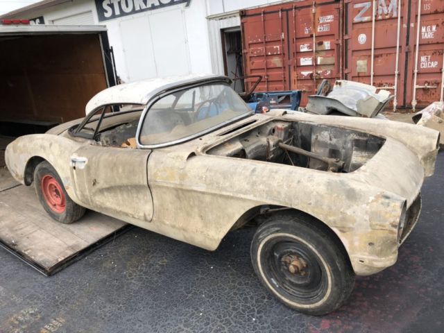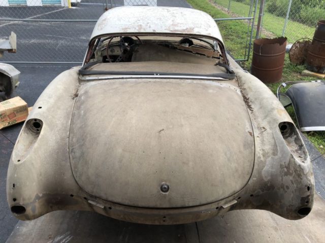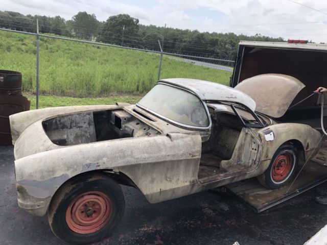 1957 Corvette Project Car - Needs minor body work, paint, and assembly. Arizona car with no rust frame. 265 HP engine (NOM) with 3-speed manual transmission. Soft top and frame. Includes beige soft top, chrome bumpers seat tracks, seats, steering wheel (beige), wheels and tires, signal seeking AM radio, instruments, windshield and frame, door glass, door posts, 2x4 intake and air cleaner, oil pan, 7-fin corvette valve covers, radiator, fuel pump, generator, brake master cylinder, distributer, water pump, fan blade, grill and surround, fender scoop chrome inserts, front and rear emblems, ignition wiring shields, fuse block, head/tail lights, gas tank straps, door handles and catches, firewall insulation, bumper reinforcement bar, red top washer fluid reservoir (repro). Clear Texas title. Private seller. Please no trades. Cash sale. Sold as is. No returns. Questions text or call Mike at (817) 925-5756 between 1:00 - 8:00 pm CST.
